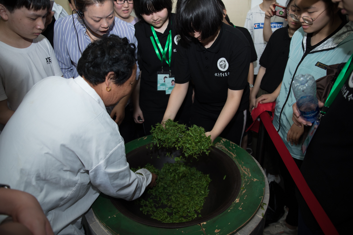 杀青,揉搓……看着师傅留下的汗水,同学们不禁主动拿起扇子帮师傅降温;