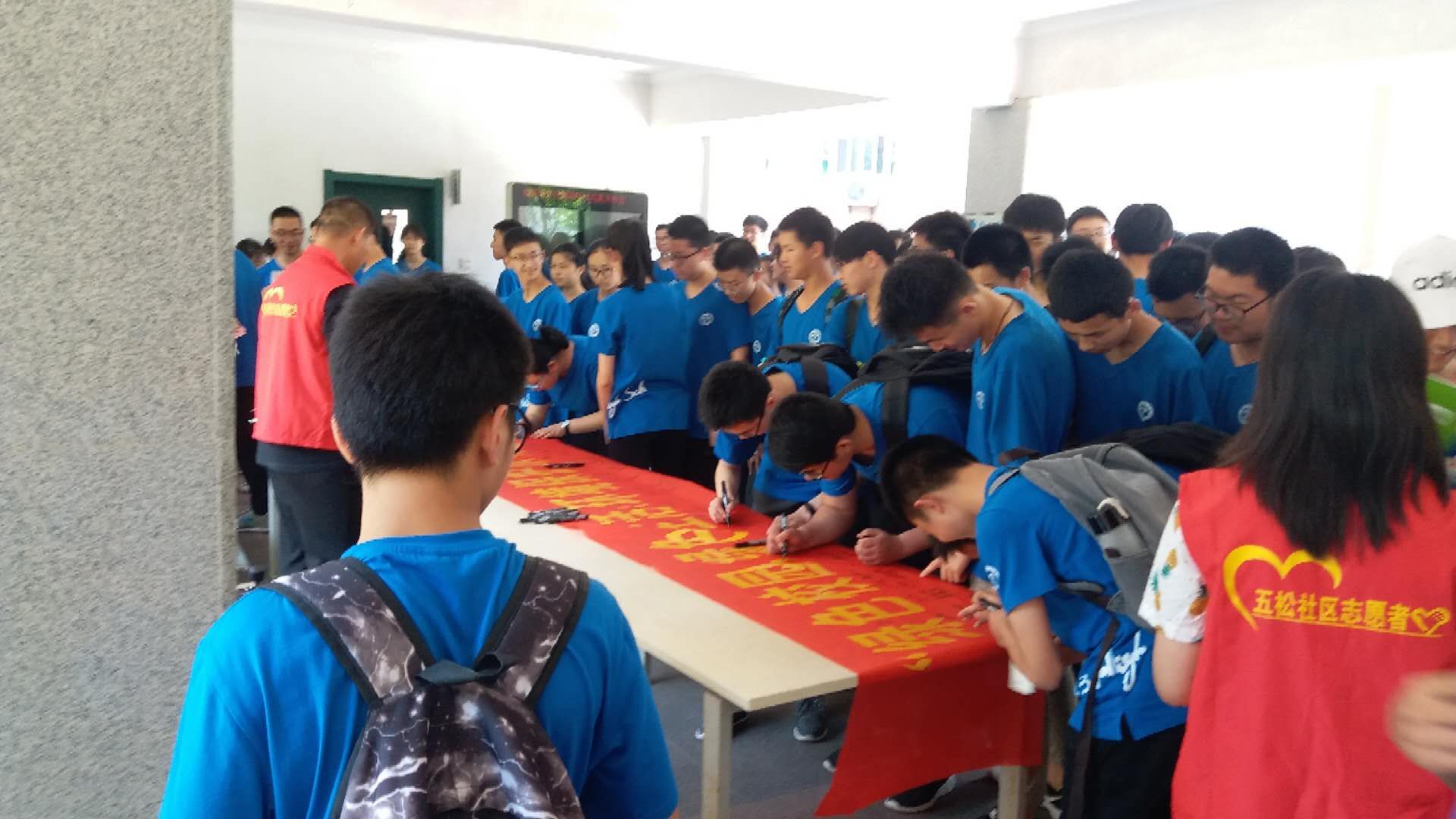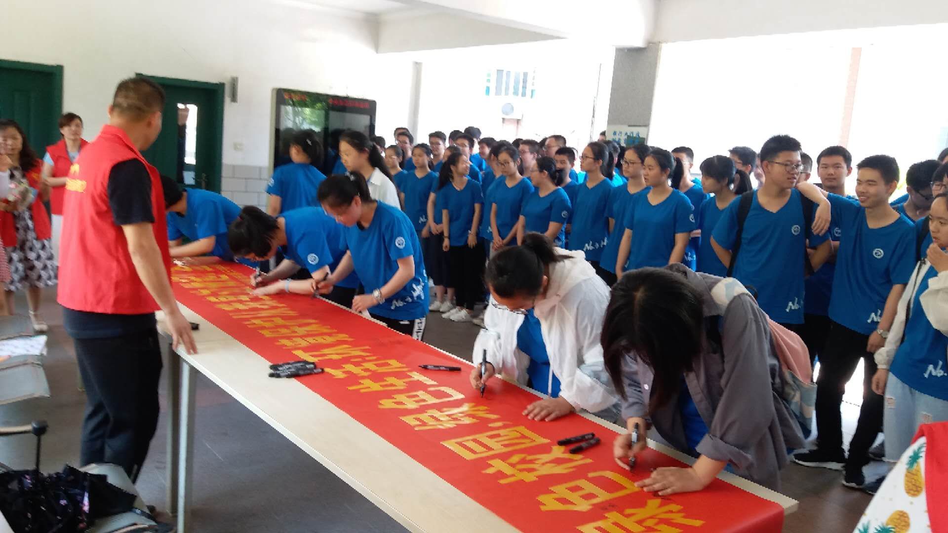 活动中,五松社区服务中心副主任钱丽丽亲自向同学们宣讲环保相关知识,社区志愿者们向参加活动的同学发放了环保宣传手册。同学们在聆听了钱主任的环保知识宣讲、阅读了环保宣传手册后,纷纷在条幅上签名,许下环保承诺,携手共建共享生态环保校园。