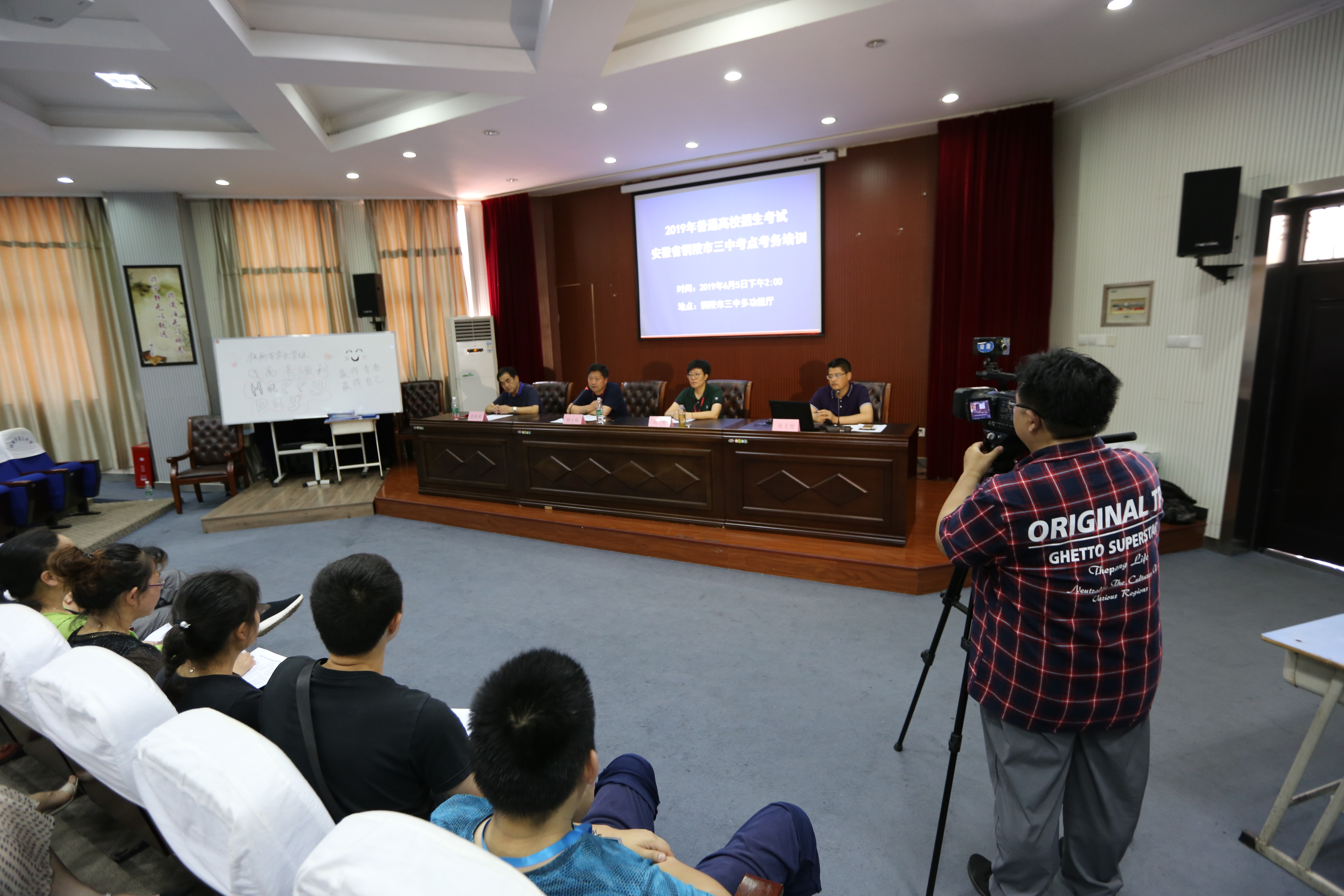校党委书记、校长钟士标同志向各位考务工作人员简单介绍了三中校史和发展情况,钟校长表示将切实履行考点部门职责,他同时要求全体考务人员要进一步统一思想,明确任务,落实责任,周密细致;要提高政治站位,强化考务管理,加强学习培训,严肃考风考纪,用情服务考生,切实增强涉考工作人员的责任意识、风险意识和法律意识,确保考务工作不出差错;切实加强安全保密和应急管理等各项考务工作,采取一切预防措施,确保在考试期间不发生意外事故,实现高考工作安全、平稳、顺利进行。