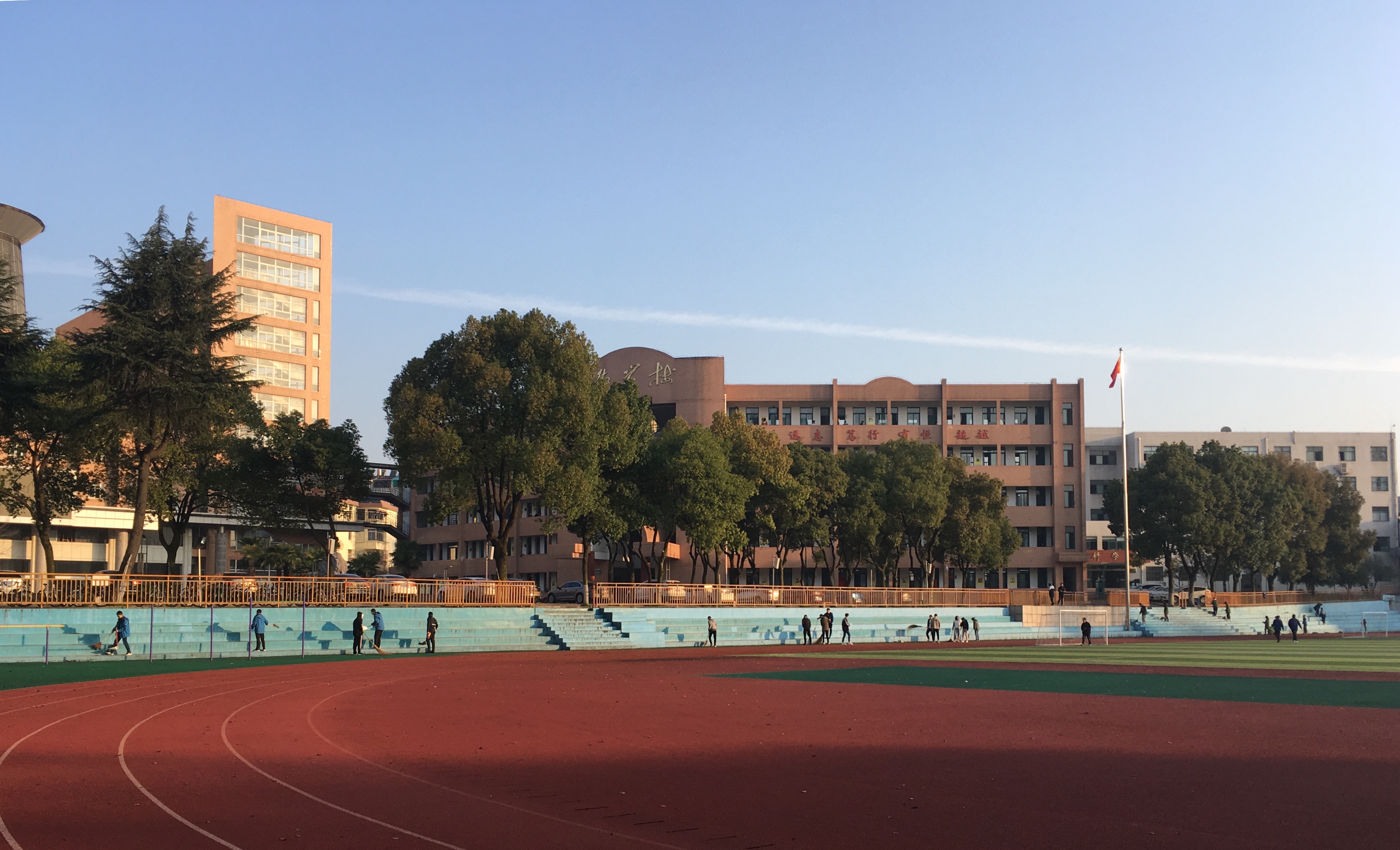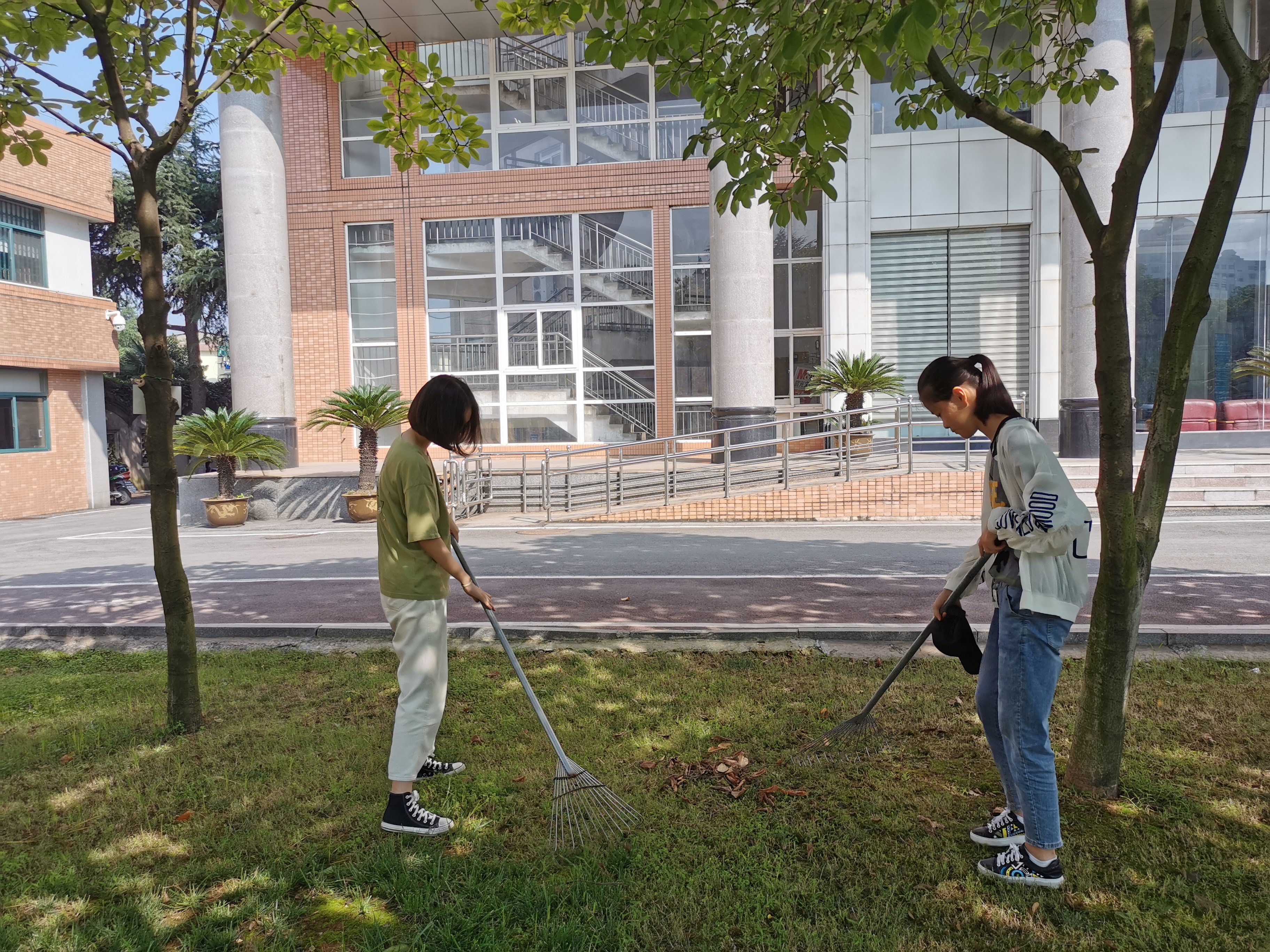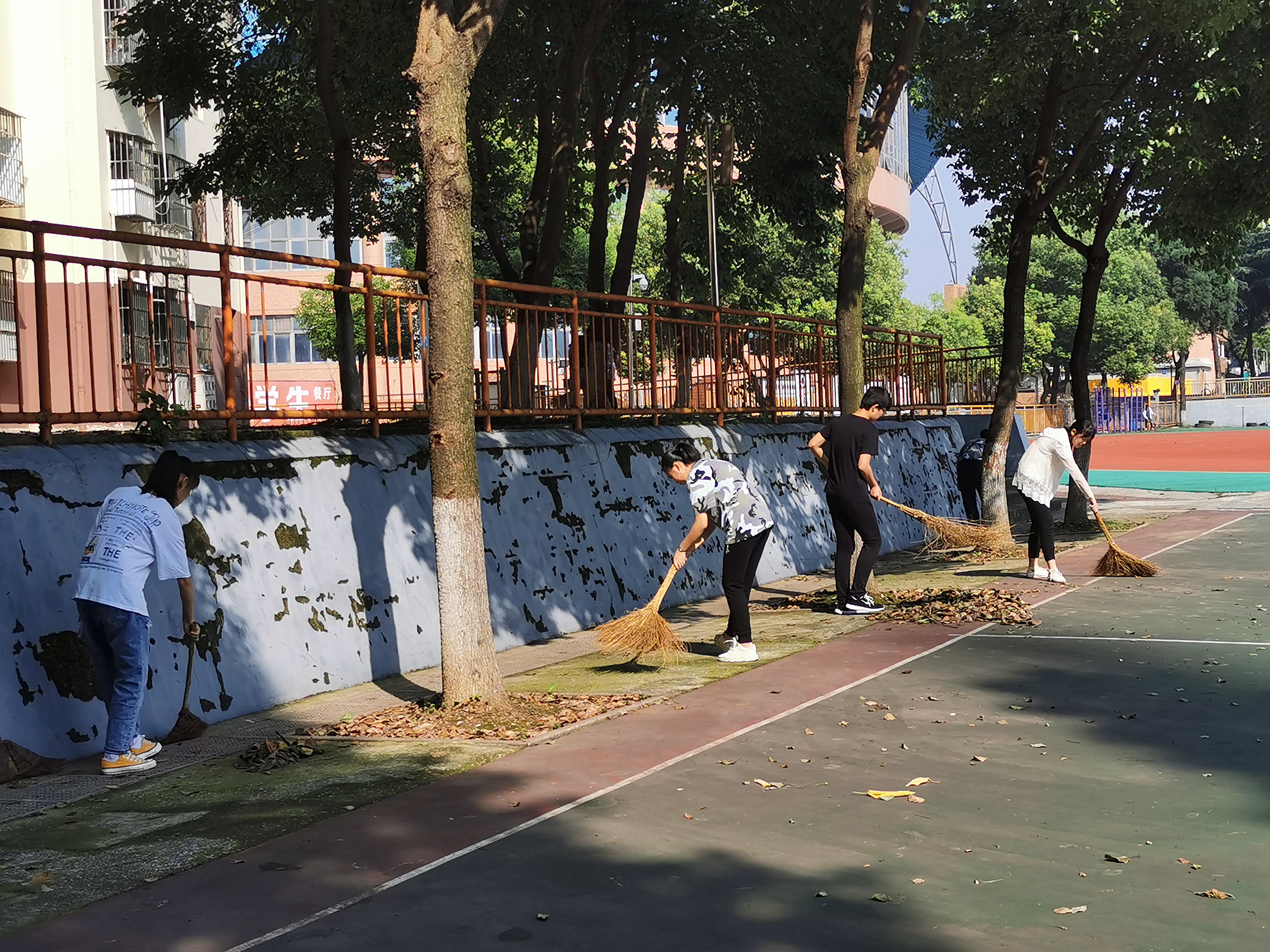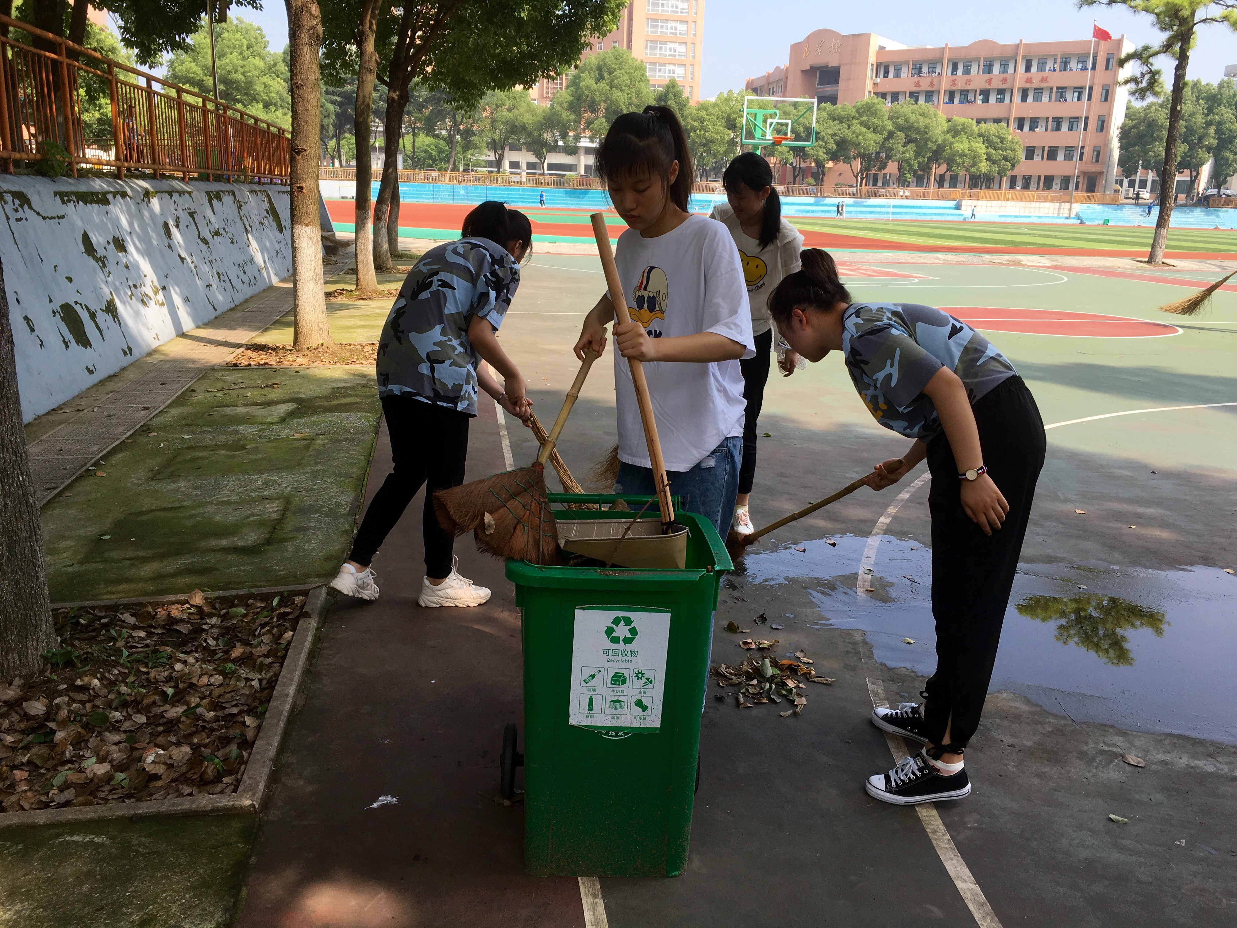 学校从培养学生爱校如爱家、日常行为养成着手,每年在高一年级开展学生参与劳动实践活动,在校园划分学生室外卫生责任区,并定期在暑期安排高一学生返校清扫校园卫生,培养学生“勤劳笃行乐奉献”的精神。