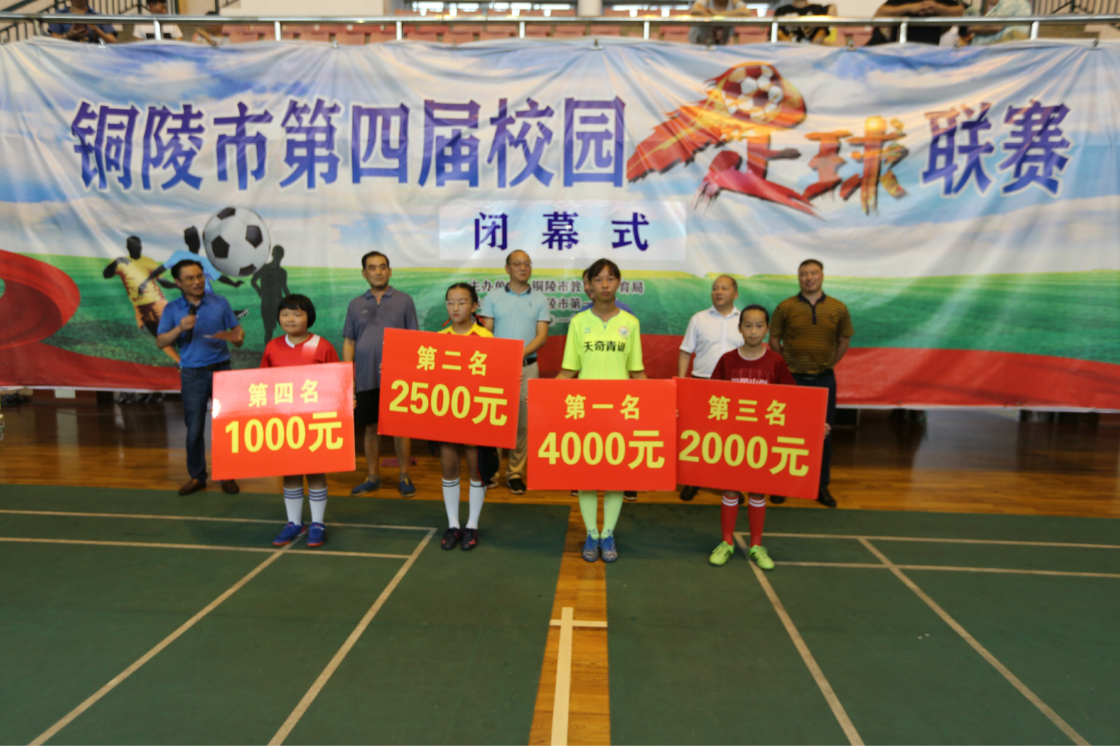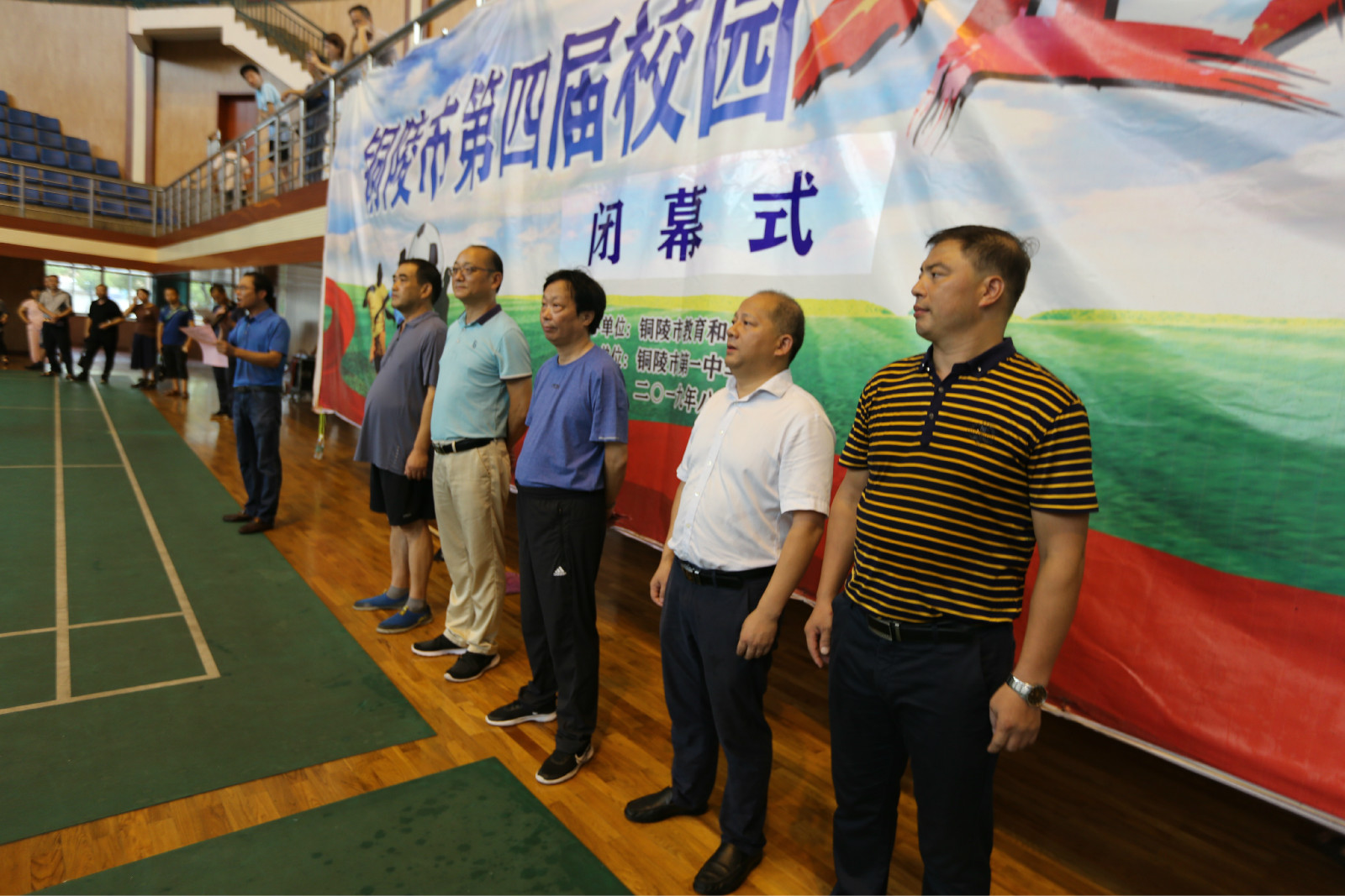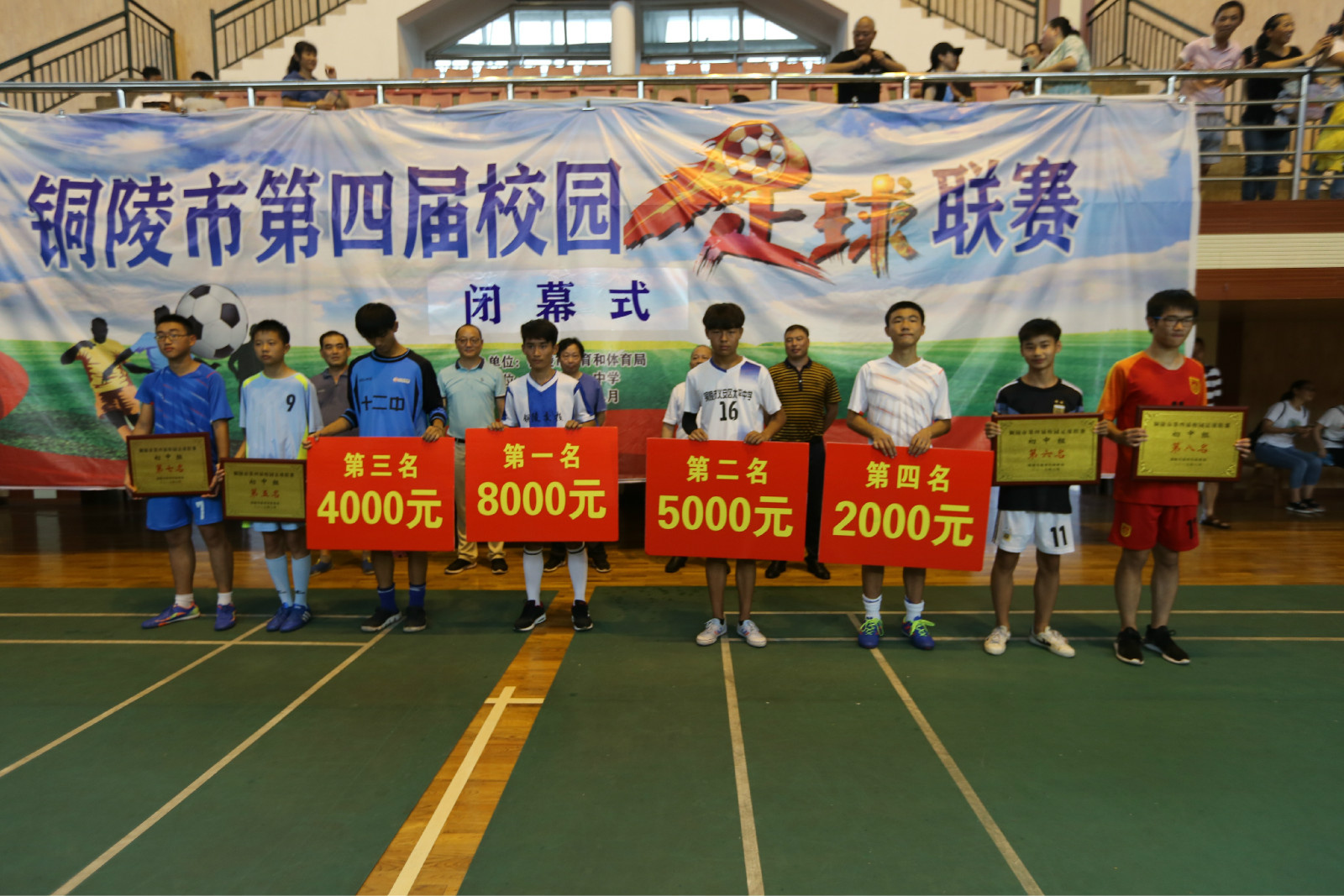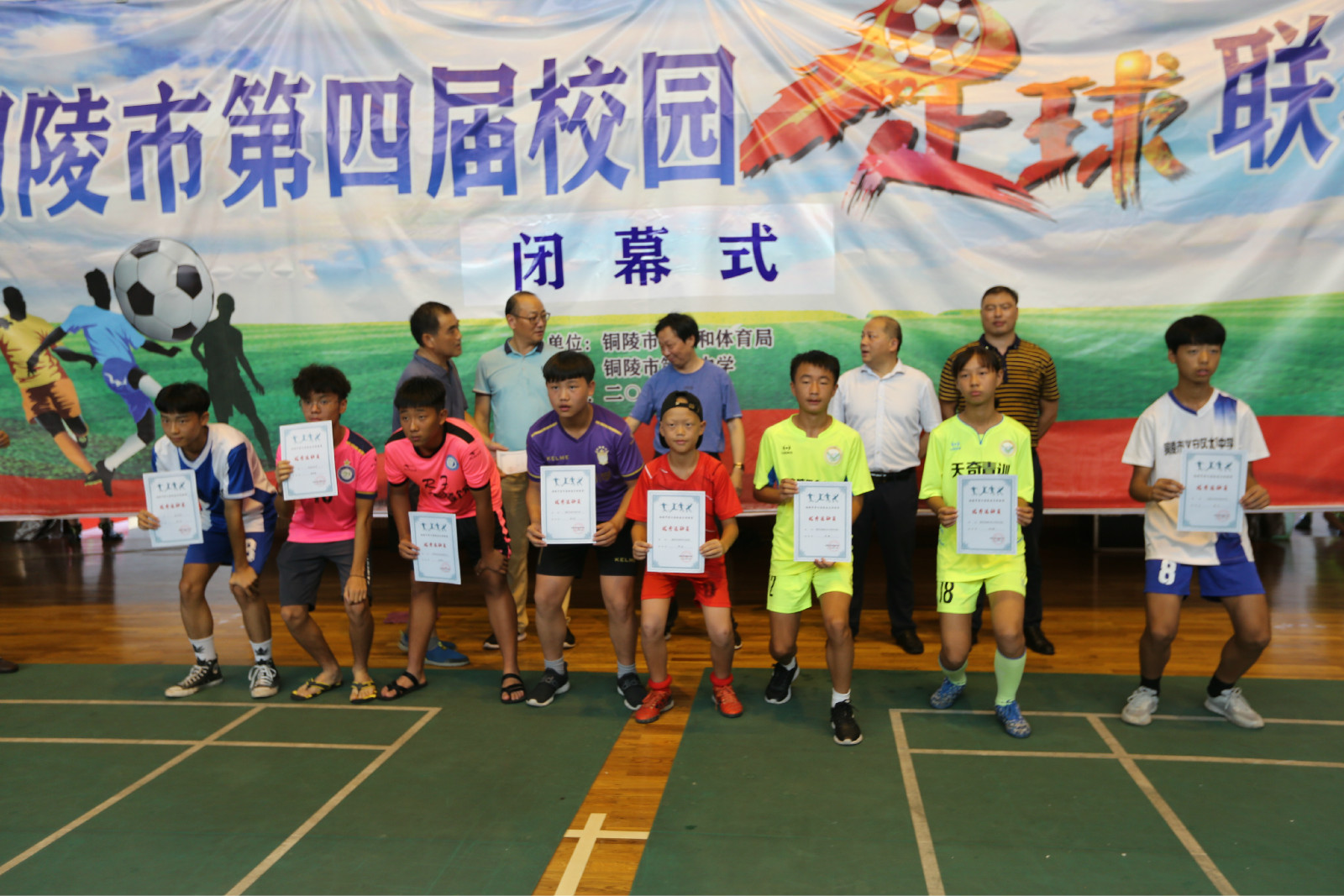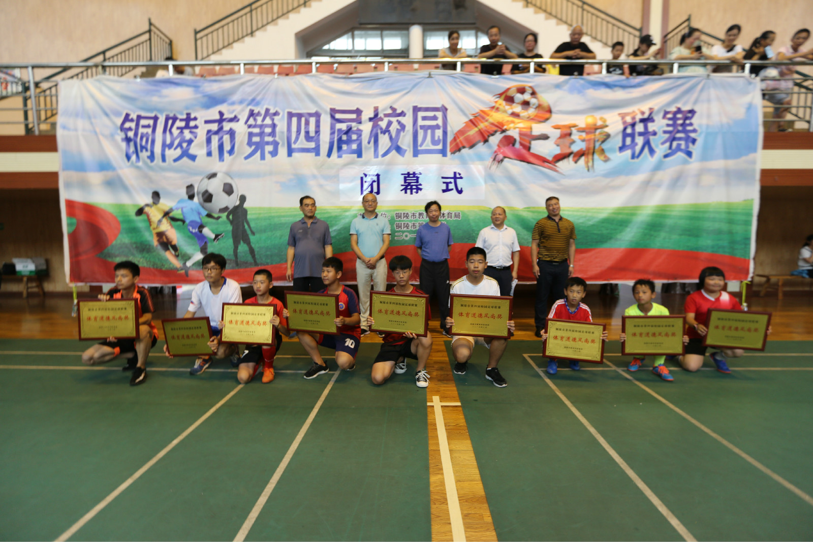 本校讯 在各方的共同努力下,经过十天紧张激烈角逐,铜陵市第四届校园足球联赛于今天落下帷幕。上午10时整,铜陵市第四届校园足球联赛闭幕式在三中体育馆举行,市教育和体育局党委委员、工会主席郑国,一中副校长汪小平,三中副校长张国荣,实验高中校长徐修敏,十五中东校区副校长石天群等领导出席闭幕式。闭幕式仪式由市教体局竞技体育与艺术教育科科长刘从斌主持。