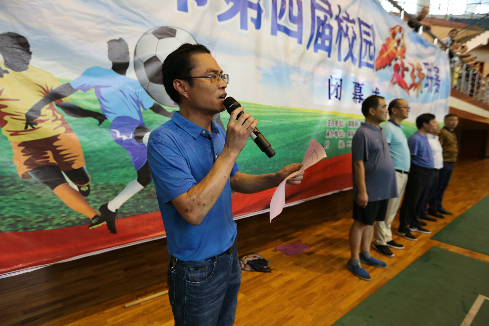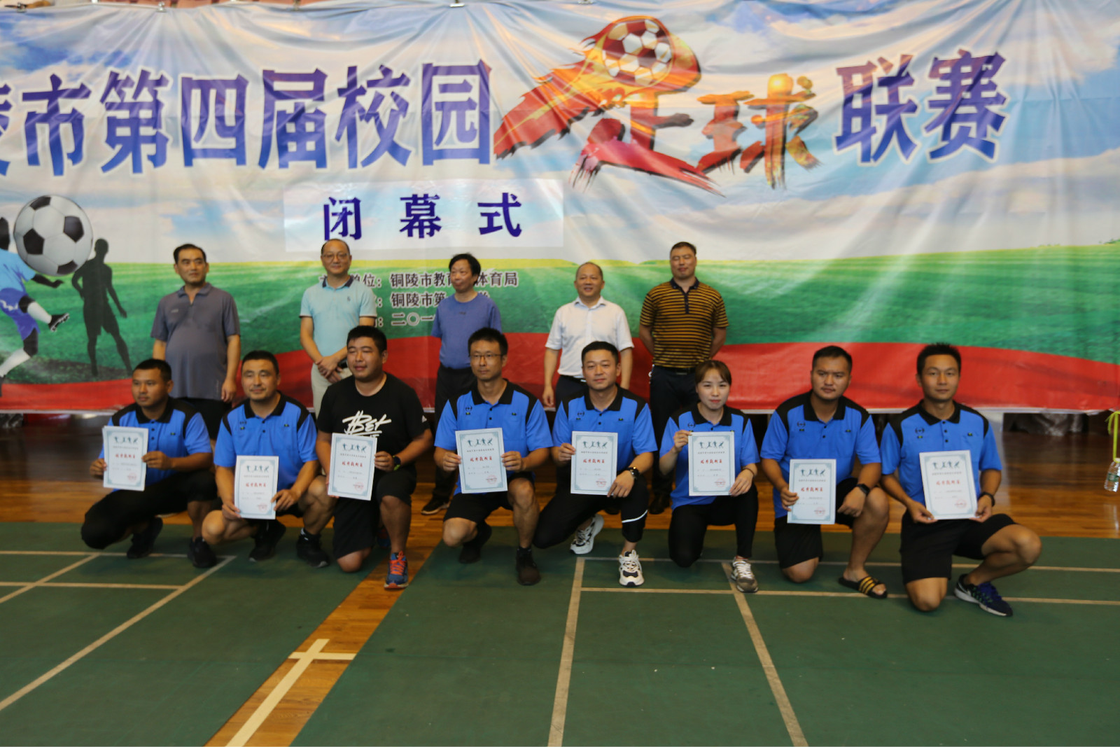 闭幕式上,裁判长范玉宽老师宣布了本次校园足球联赛的具体成绩。市教育和体育局党委委员、工会主席郑国和其他领导为获奖单位和个人分别进行了颁奖。