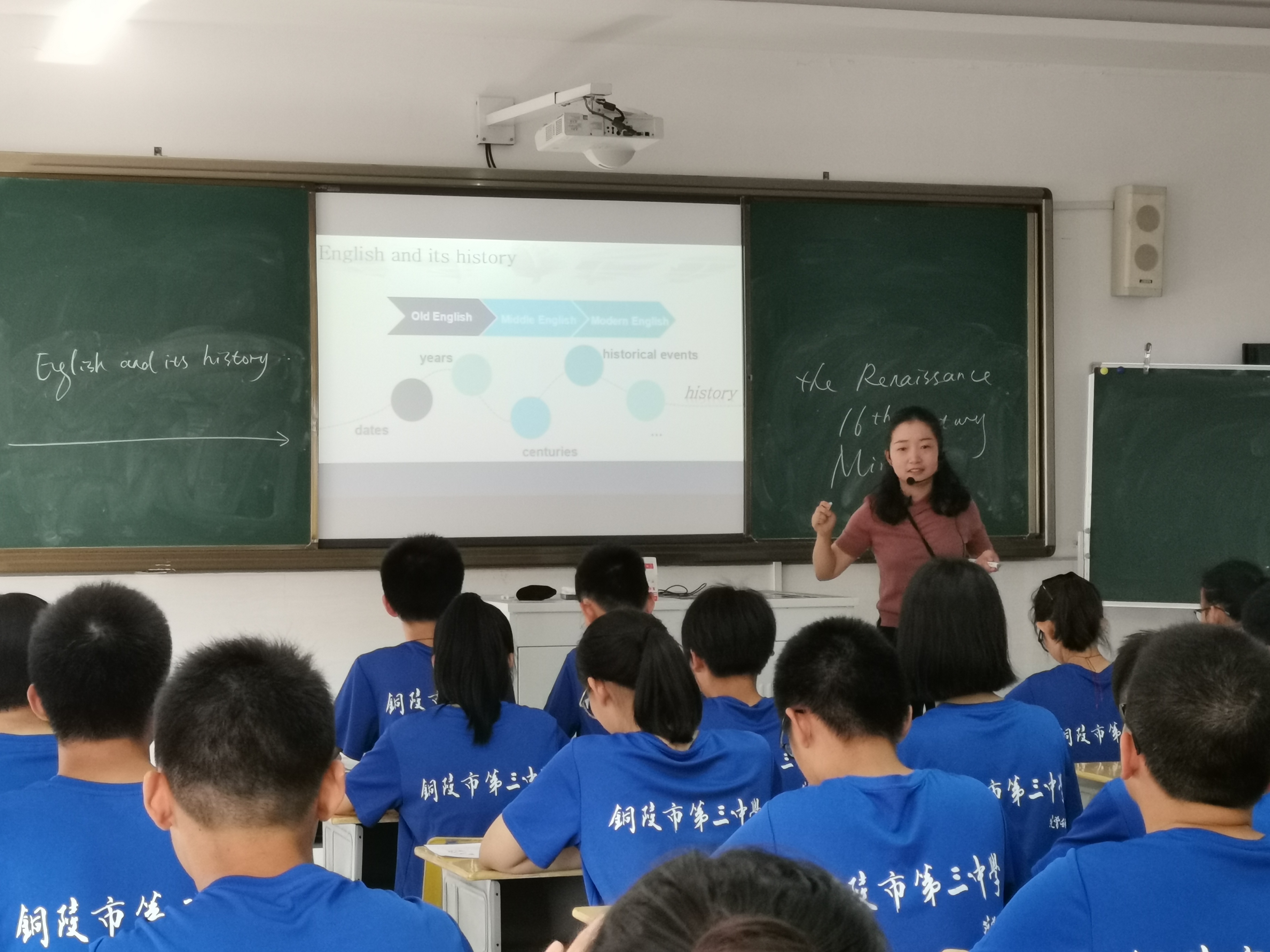 金秋送爽,丹桂飘香,铜陵市高中英语优质课第二轮现场课于9月17日(本周二)上午在我校科技馆5楼录播室进行,来自市五中的王澈老师、市实验高中的陶青青老师和我校刘林溪老师参与了本次现场课教学,来自全市各学校的英语教师观摩了本次教学活动。通过本次现场课教学,强化了校际学术和教研交流,同时也给学生带来了不同的课堂体验,对英语教学新模式的探索是个良好的开端。我校英语教研组团结合作,为我校参赛选手出谋划策,打磨课程教材,展现出三中优良的教学风貌。10月,刘林溪老师将代表铜陵市参加在马鞍山举办的省说课比赛。