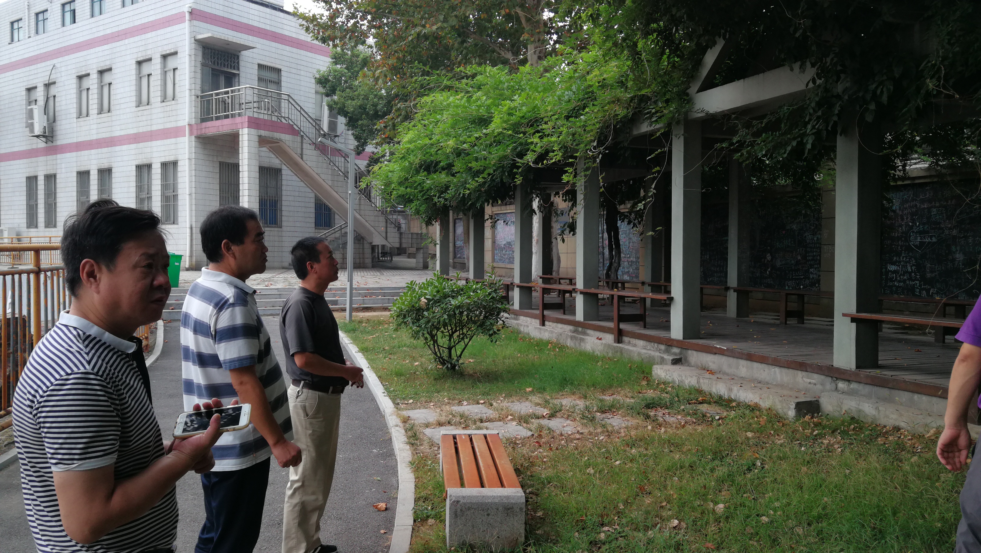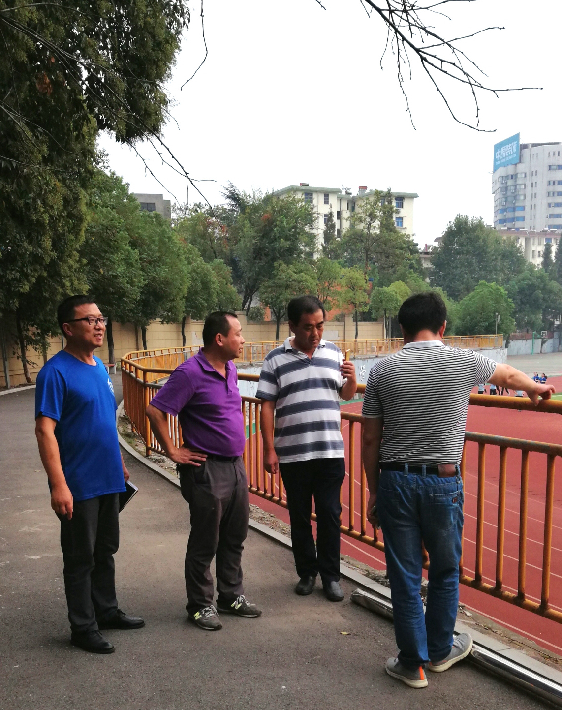 学校安全工作领导小组副组长,副校长张国荣同志带领校保卫科负责人、校总务处相关工作人员对全校各安全隐患点进行了全面的排查,发现一处整改一处,力争在节前全面清理安全隐患点,及时修复操场栏杆扶手,焊接卧倒的广播立柱、修整枯死的树木、清理散乱的电线以及对学生宿舍的管理提出了要求,住校学生在9月30日下午放学后应该及时离校,不能离校的由政教处进行统计,做好留宿管理。