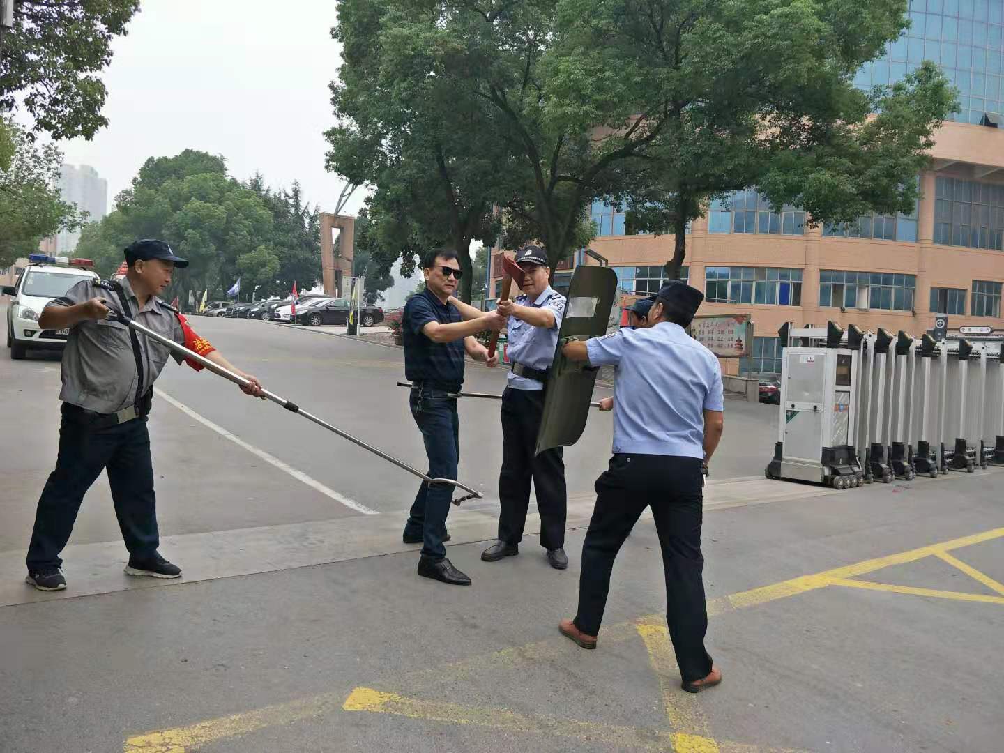 另外,学校保卫科做好警校联动,在上午9点许,与长江路派出所联合进行了第三季度反恐防范演练,设定假想恐怖分子持刀在校大门进行恐怖袭击,全体保安及安全工作人员立即启动了应急预案,启动一键报警装置,在极短时间内合力制服了“歹徒”,及时控制了事态的发展。此次演练增强了门卫的防范意识,提高了防范技能,演练取得了实效。