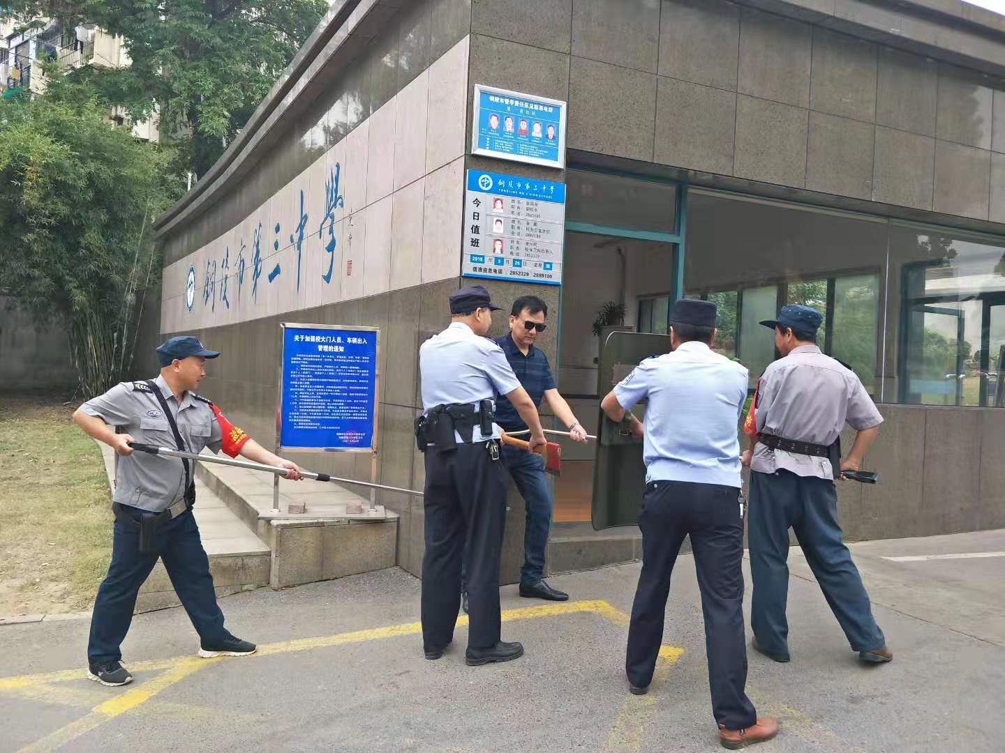 9月26日,在学校安全工作领导的布置下,我校各部门为迎接建国70周年大庆,开展了一系列全校安全大检查及防恐防范演练。