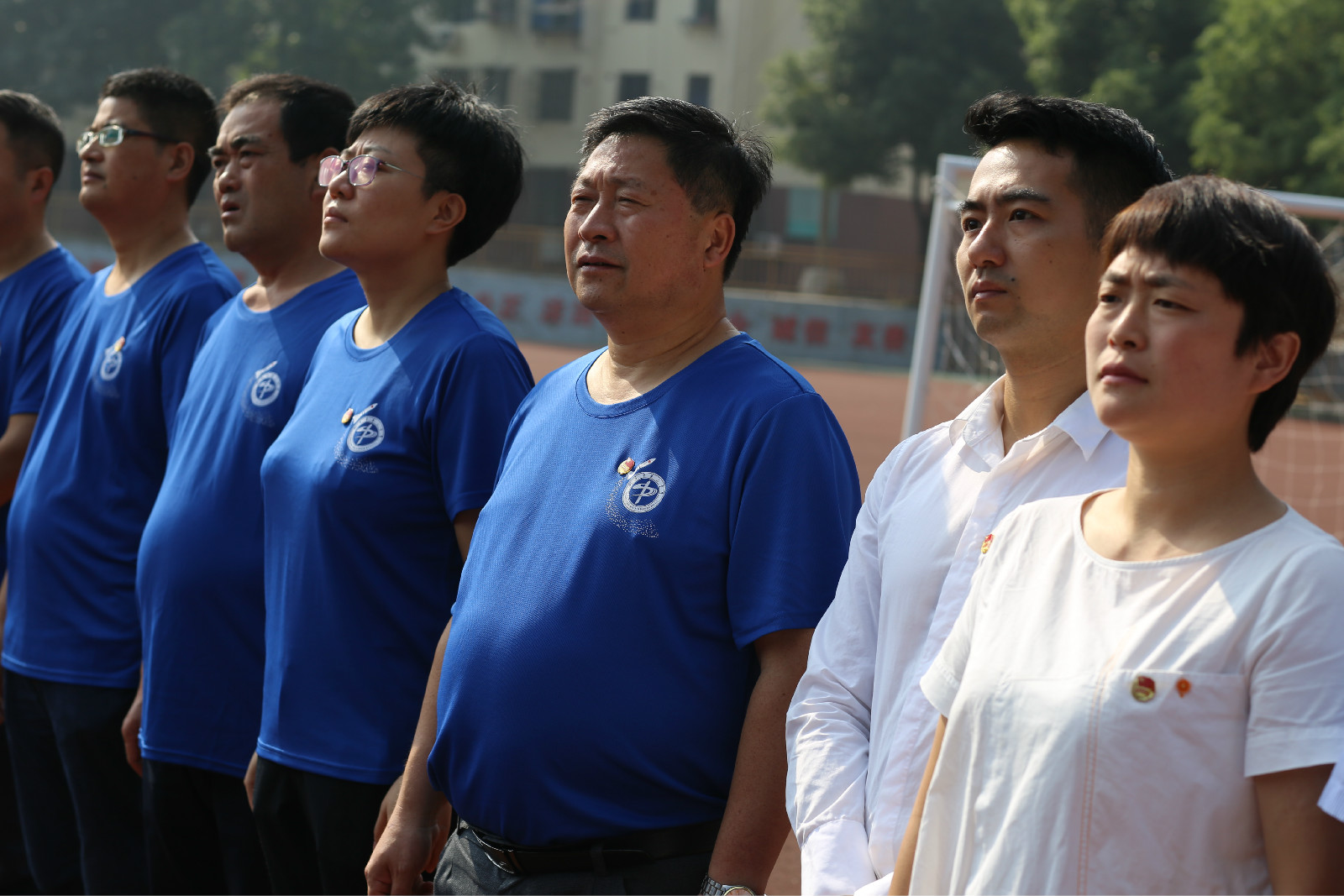 本校讯 9月30日上午,在新中国成立70周年到来之际,铜陵市三中全体师生用一场特殊的升旗仪式为祖国母亲庆生。校党委书记、校长钟士标,铜陵市教体局副局长高业权,团市委副书记王之莉,校党委副书记叶叶,副校长张国荣,副校长张尤俊和全体师生员工3000多人参加升旗仪式。