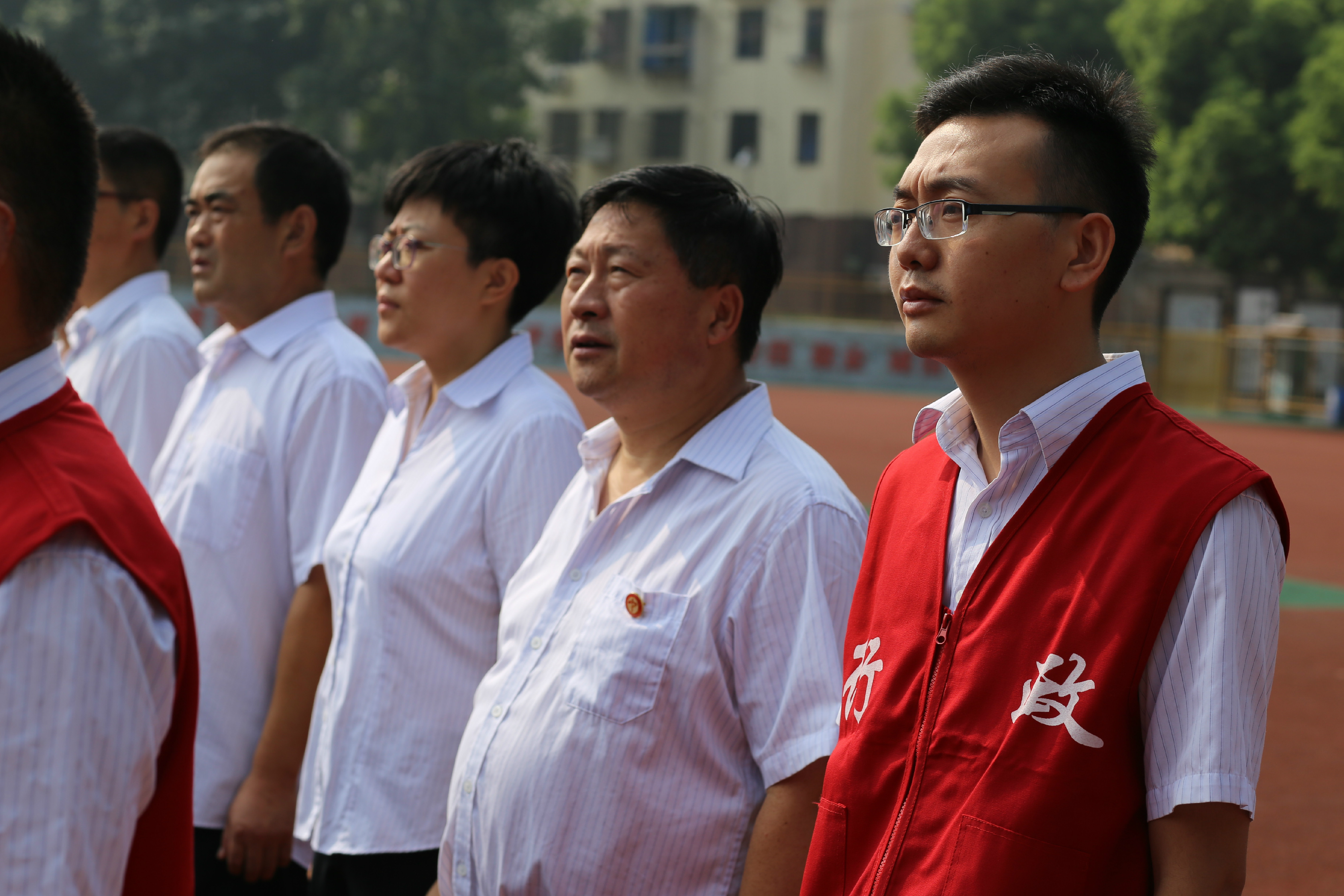学校领导钟士标、叶叶、张国荣、张尤俊以及全体教职工、学生参加了升国旗仪式。