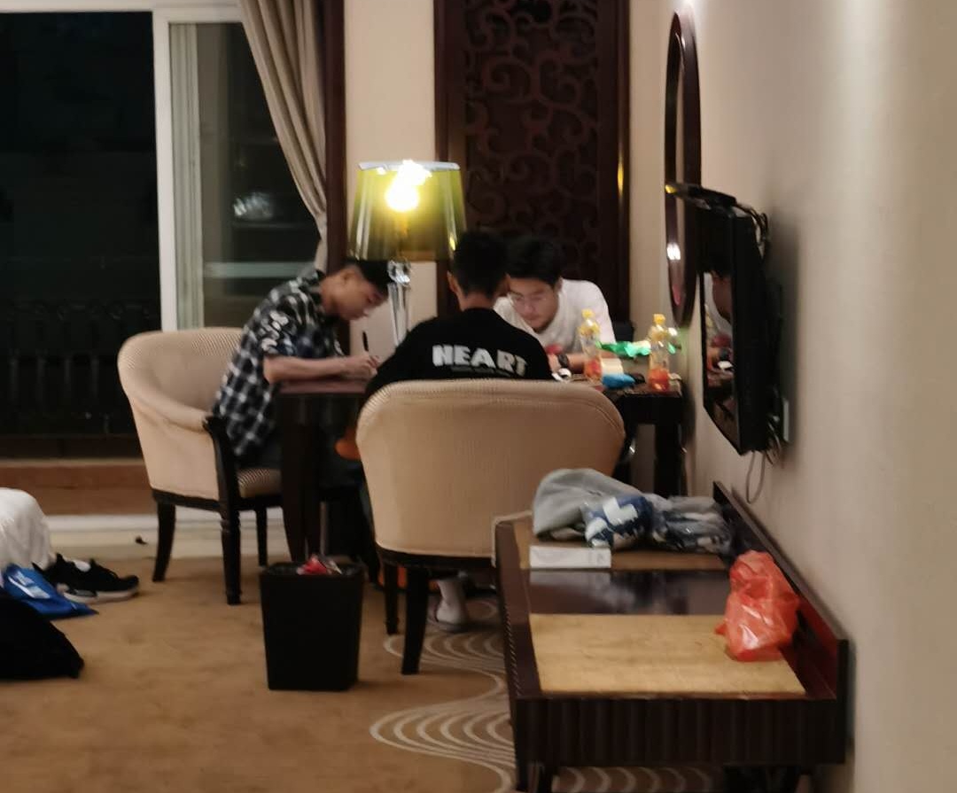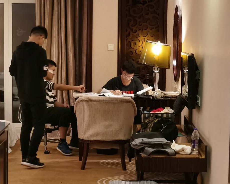 我校同学在比赛之余集中学习文化课,通过网络学习平台补抄笔记和提交作业。