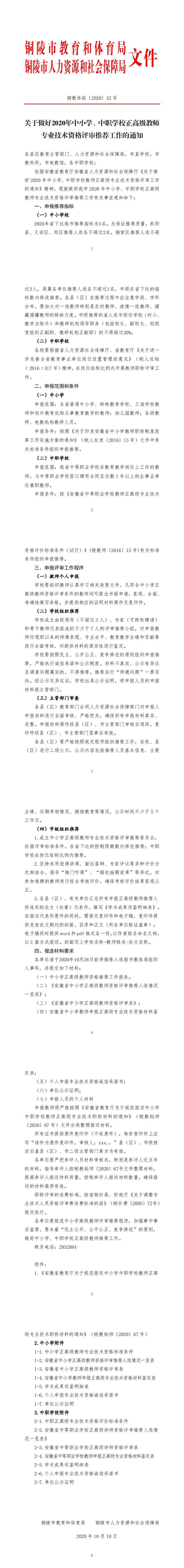 转发《关于做好2020年中小学、中职学校正高级教师专业技术资格评审推荐工作的通知》
