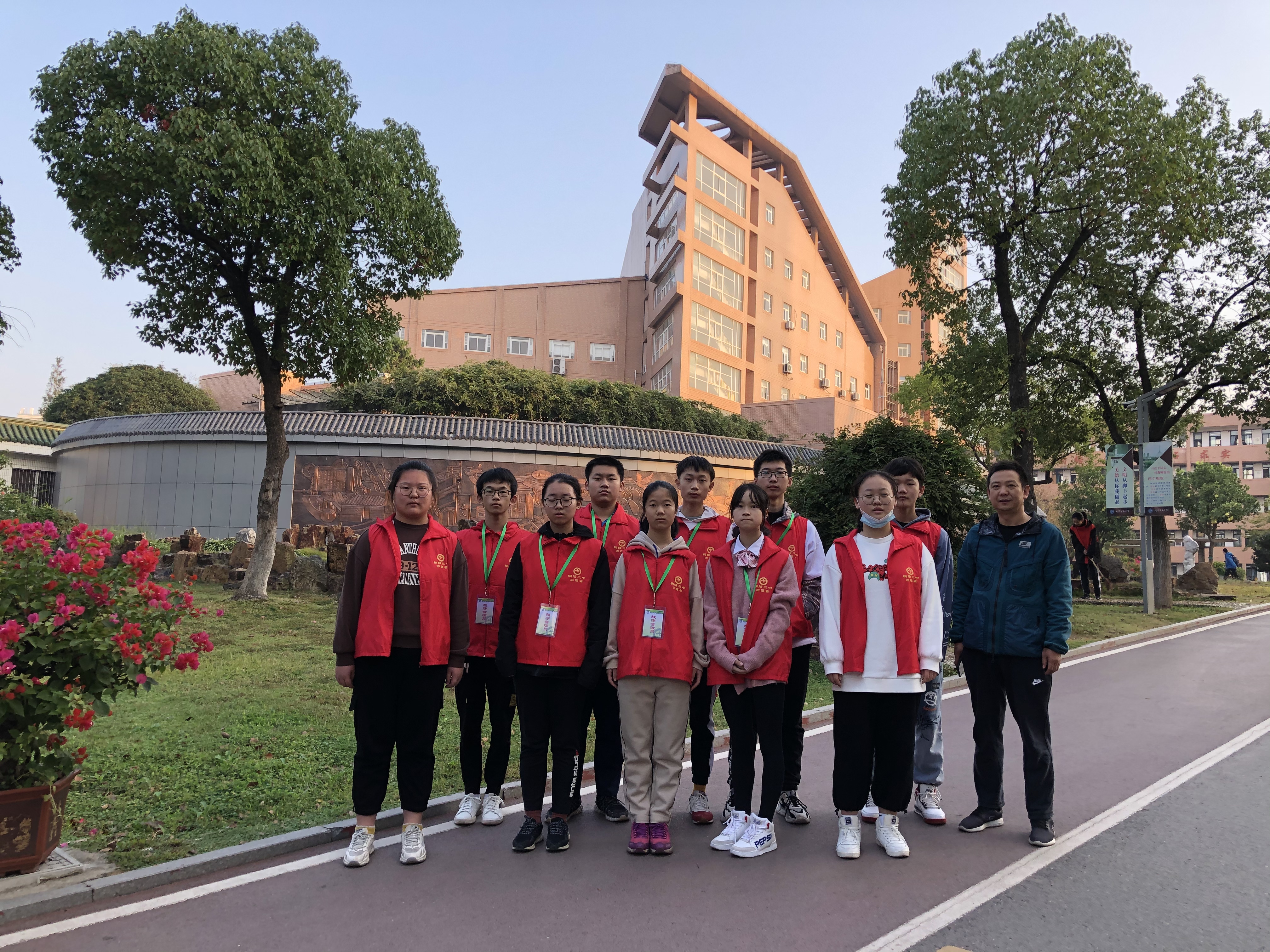 虽然这些同学表现各不相同,但是一旦有同学未从测温通道走,他们也顾不得陌生与腼腆,赶忙上去与同学交流指引,偶尔看见打打闹闹的同学也会及时劝阻,穿上红马甲就仿佛接到了任务一般,大家都尽职尽责的站在岗位上,班主任也在一旁陪伴着我们。