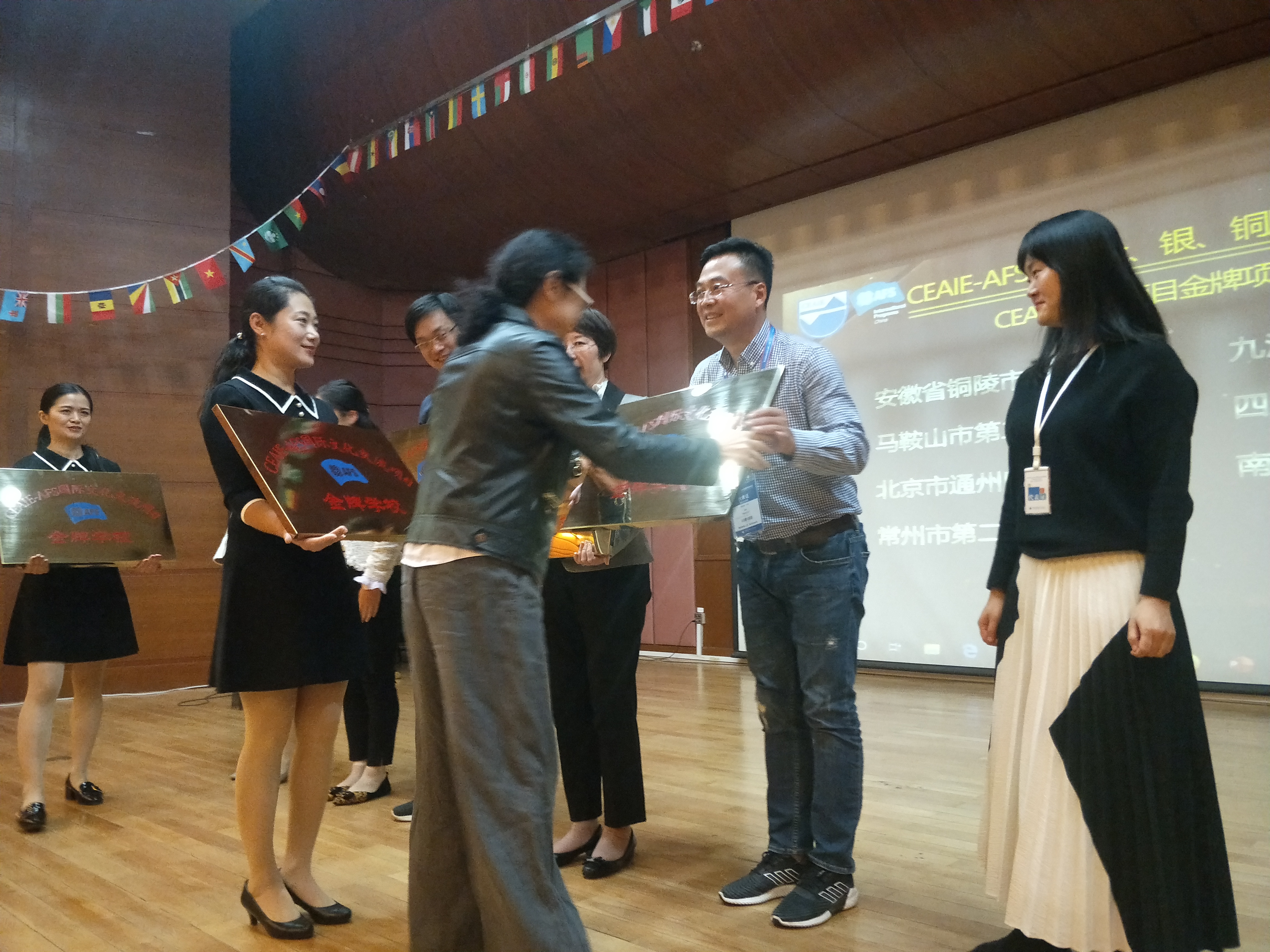 本校讯 近日,中国教育国际交流协会2019年度师生交流项目全国年度工作会议在北京逸夫会议中心召开。本次全国会上,铜陵三中以全国排名第一获得CEAIE-AFS项目金牌学校。梁波同志在大会上领取了奖牌。
