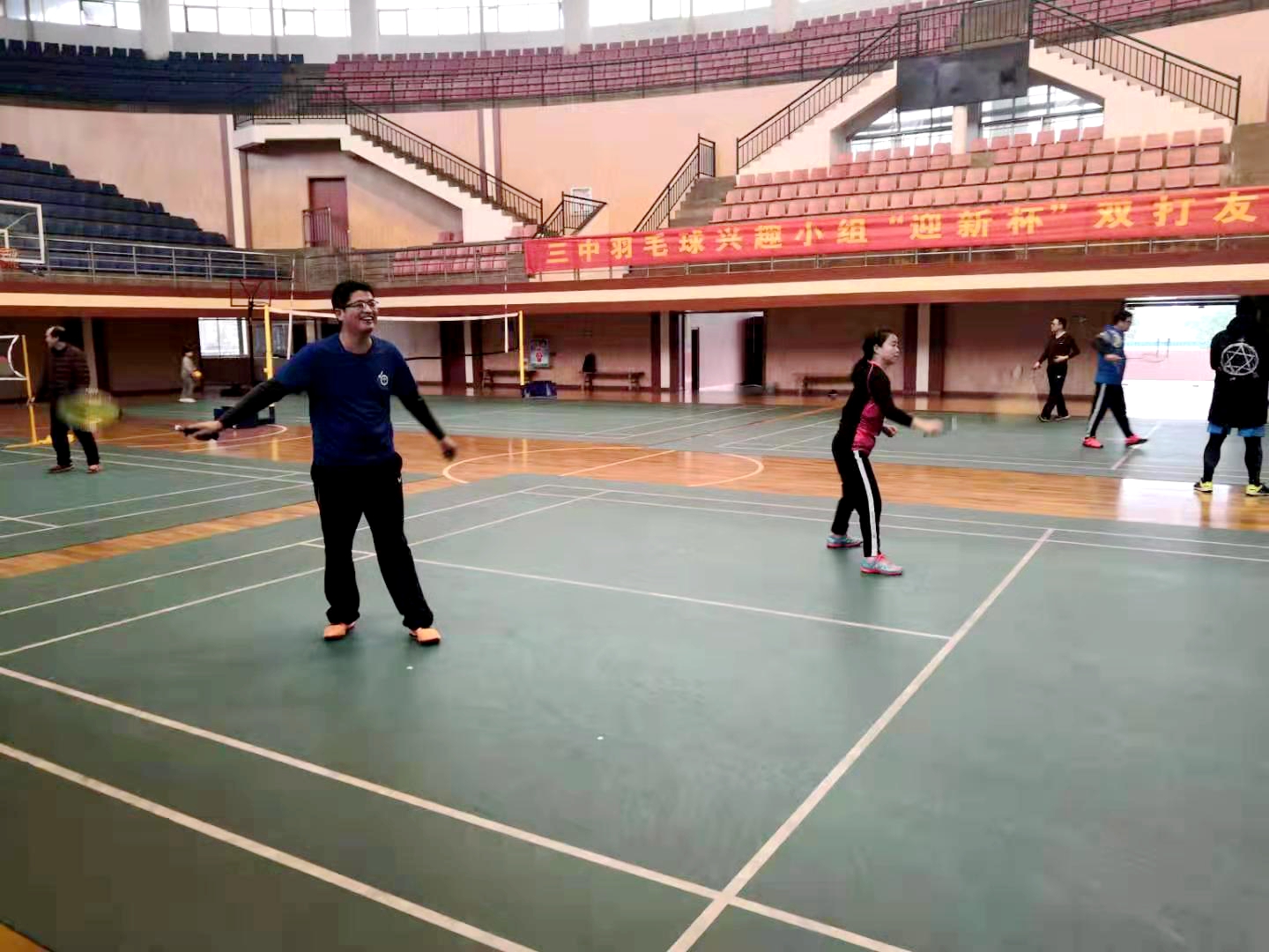 2020年元月1日下午,新年伊始,我校羽毛球兴趣小组举行“迎新年”双打友谊赛,迎接新的一年的到来,拉开了三中人奋进拼搏的序幕。