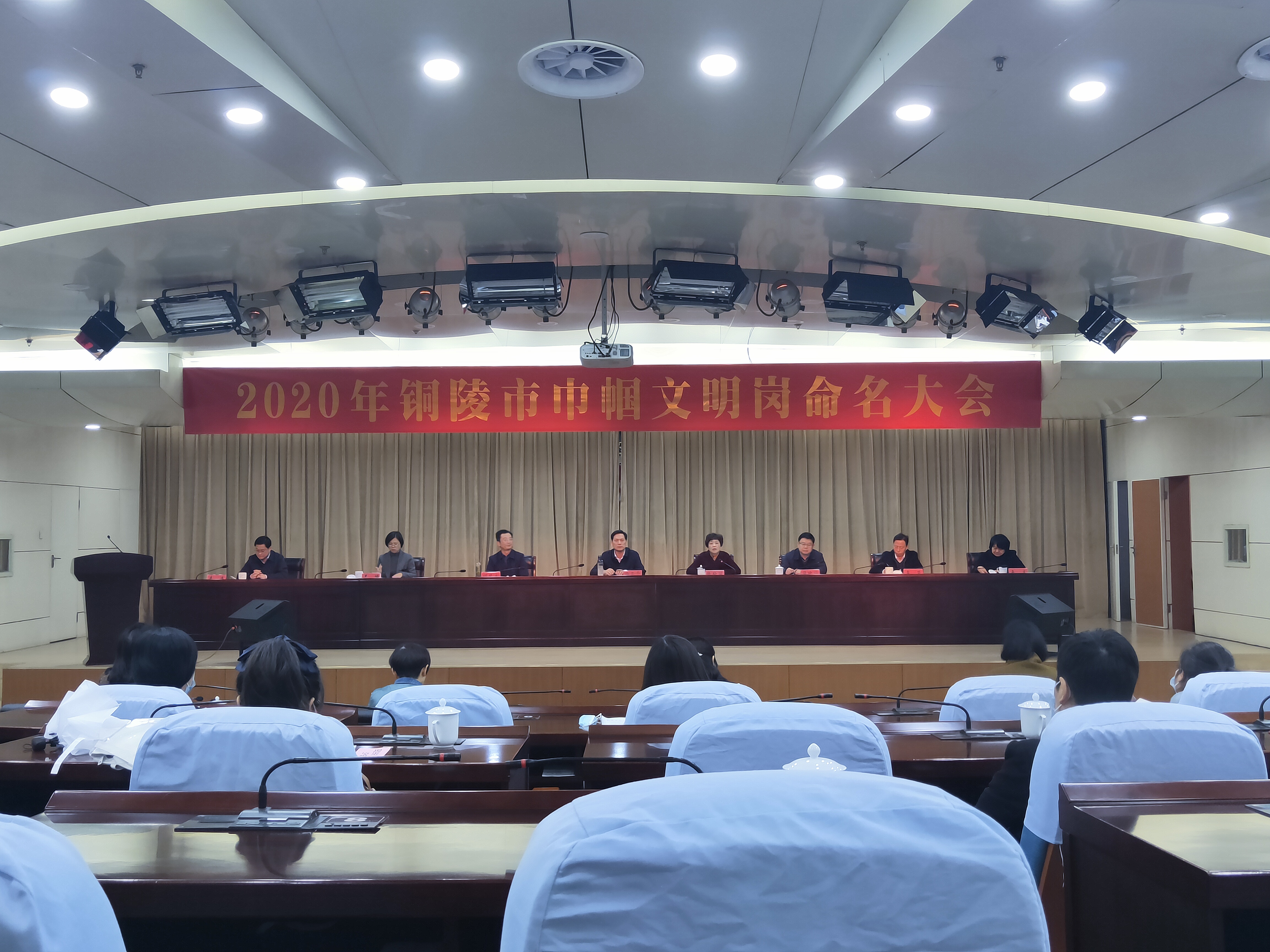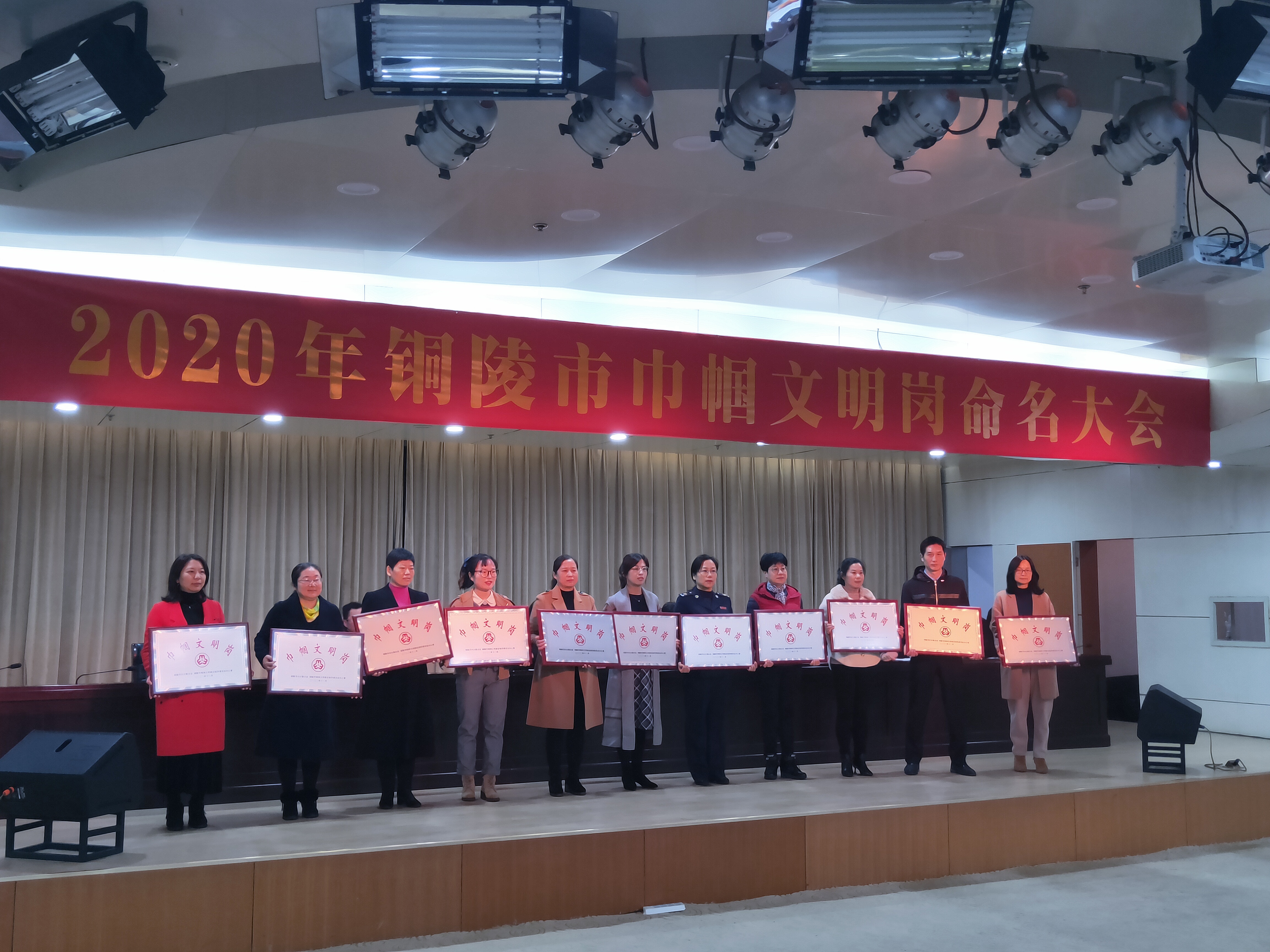 11月24日上午,2020年铜陵市巾帼文明岗命名大会在市行政服务中心举办,我校语文组荣获市“巾帼文明岗”称号。语文组乔红胜组长、丁睿老师参加大会。