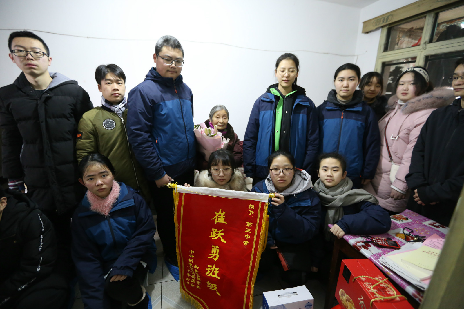 本校讯 元月15日上午,崔跃勇班级部分同学和家长在校政教处主任章学标、班主任汪军生老师带领下,冒着细雨来到我校校友、烈士崔跃勇家中,看望慰问84岁高龄的英雄母亲。