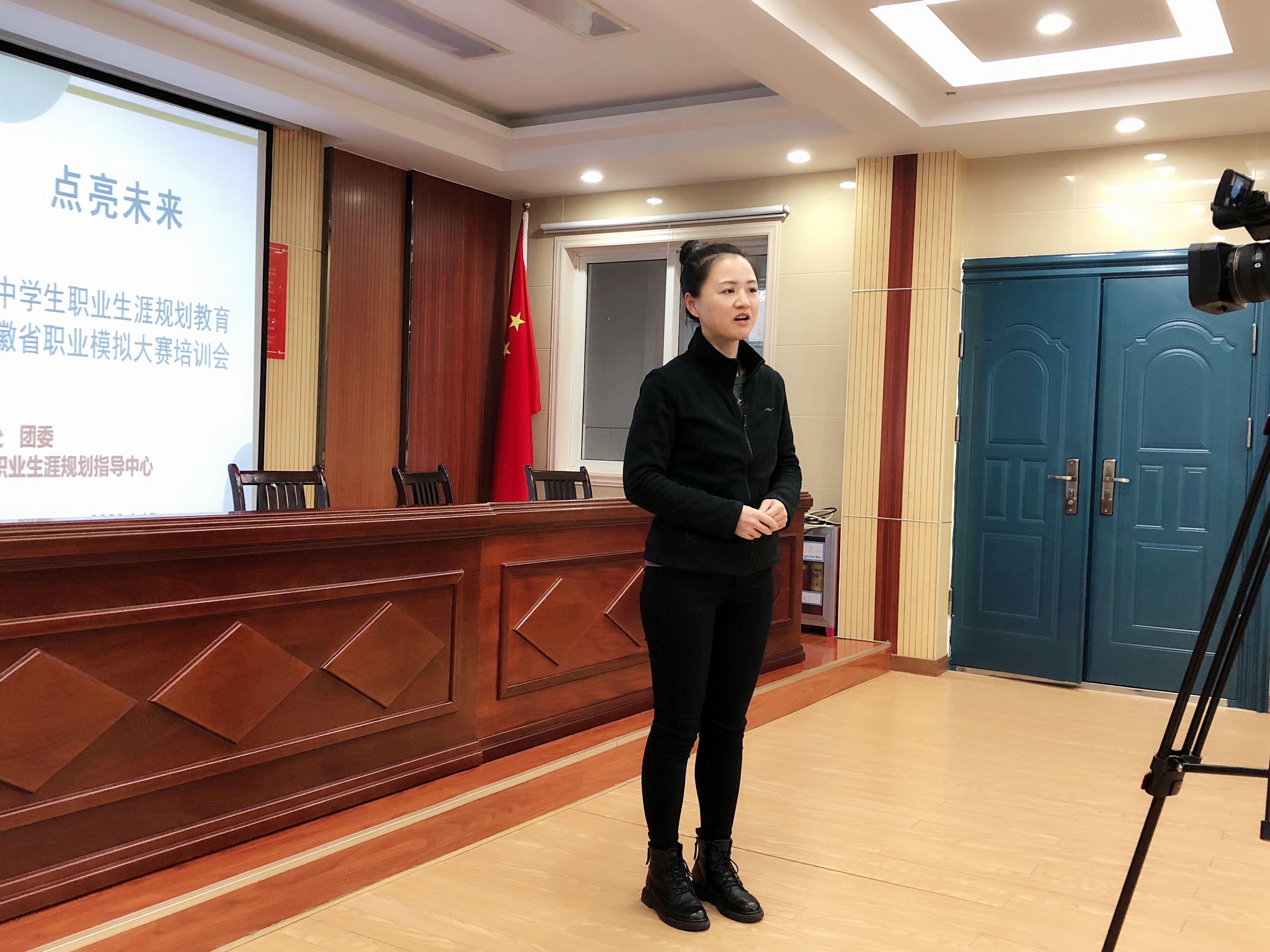 2020年1月15日下午3点,综合楼5楼多媒体会议室灯火明朗,青春正好。我校学生职业生涯规划教育暨第四届安徽省职业模拟大赛培训会在此隆重举行。校党委副书记叶叶、校政教处主任章学标、校德育辅导室、职业生涯规划中心负责人胡晓雯、校团委副书记王俊朝、校职业生涯规划中心专职教师、心理学高级教师叶文婷出席会议。大会由校团委副书记王俊朝主持,高一高二年级班主任和各班学生代表参与了此次培训。