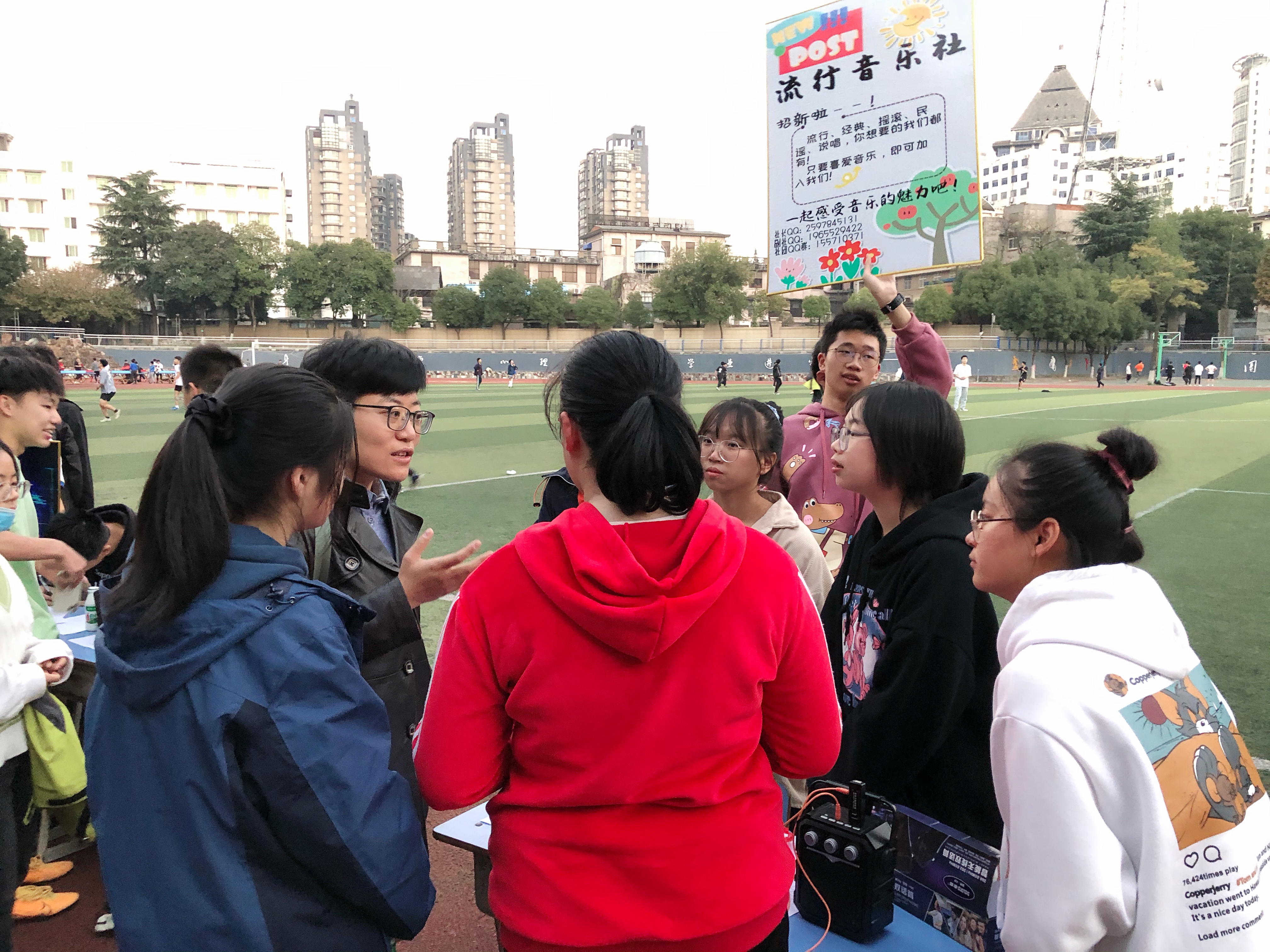 活动现场各个社团均准备充分,组织有序。吉他演奏、汉服展示、歌曲演唱、足球篮球乒乓球现场竞技……大家纷纷结合本社团特色,各显神通,用多种形式吸引新社员。口号响亮,青春激荡,前来报名入社的同学络绎不绝,活动课的操场活力四射,洋溢着如朝日般的蓬勃气息。