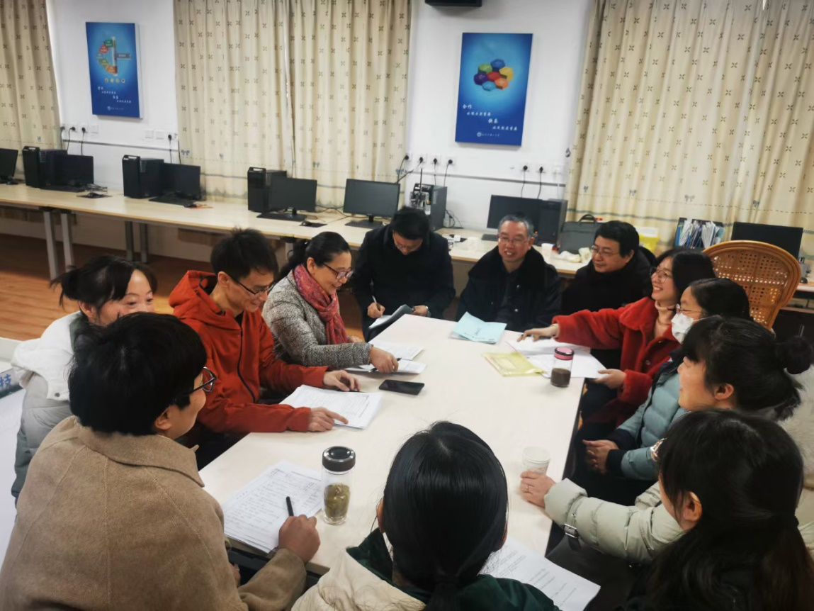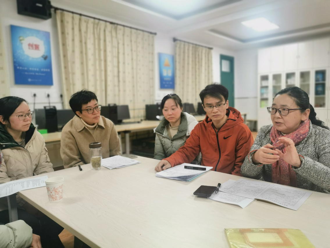 课后评课活动中,江一新老师首先点评了本节课,江老师认为本节课亮点纷呈,教师教学语言风趣幽默,话题贴近学生,课堂跟随学生思路步步推进,展现了教师扎实的基本功和课堂驾驭力,师生相互感染,课堂氛围热烈而自由,特别指出课程思政,要旨在于转化教学理念,在课程中挖掘更多育人素材。钱军主任随后点评,认为教学自信力来源于课堂思考场,我们每个人、每个家庭都是文化传播者、文化受影响者,如何在课程中把握知、懂、得、乐,增加课堂的厚度。课程思政就要求我们,由课程本位转向育人本位,不仅要做一位学科知识扎实的学科人,更做一位育人情怀饱满的教育人。