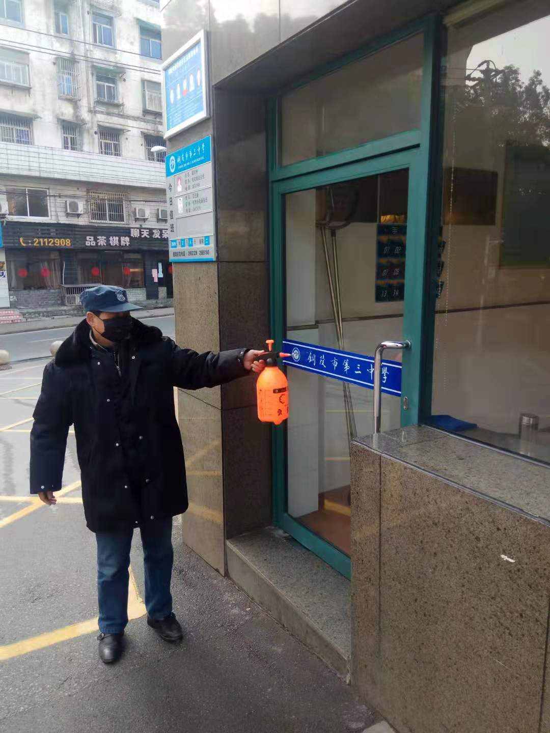 在铜陵,市三中在校党委的领导下,迅速投入疫情防控保卫战,按照市教体局的要求,全校第一时间实现封闭静校,严防、严控人员车辆进出校门,随着疫情防控要求的升级,学校防控办要求因为工作需要进入校园的人员必须在门卫处进行体温测量,检查是否佩戴口罩,严格进行实名登记,实行人员进出审批制度,入校要经过当日值班领导批准,否则一律不得入内。按照上级防疫部门的要求,学校通过微信群、QQ群、校讯通等工具,要求全校师生服从社区管理,不聚会、不聚餐、不串门、勤洗手,尽量待在家中,进行居家隔离,减少人群聚集,防止疫情扩散。