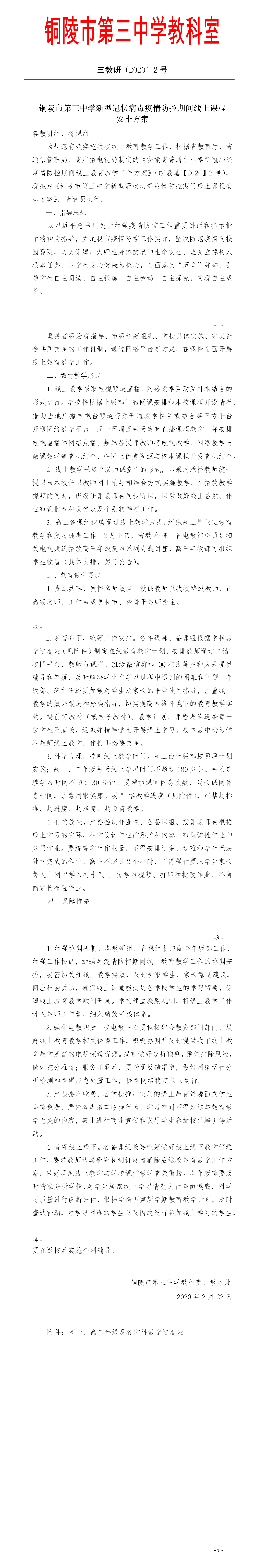 铜陵市第三中学新型冠状病毒疫情防控期间线上课程 安排方案