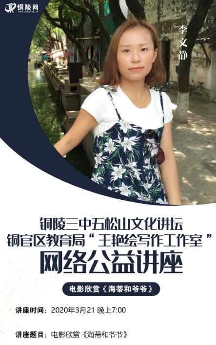 本校讯 3月21日、22日,我校五松山文化讲坛网络公益讲座迎来第3期,本期讲座共有4场,分别由李文静、吴锐、朱晓娟、周翔主讲。