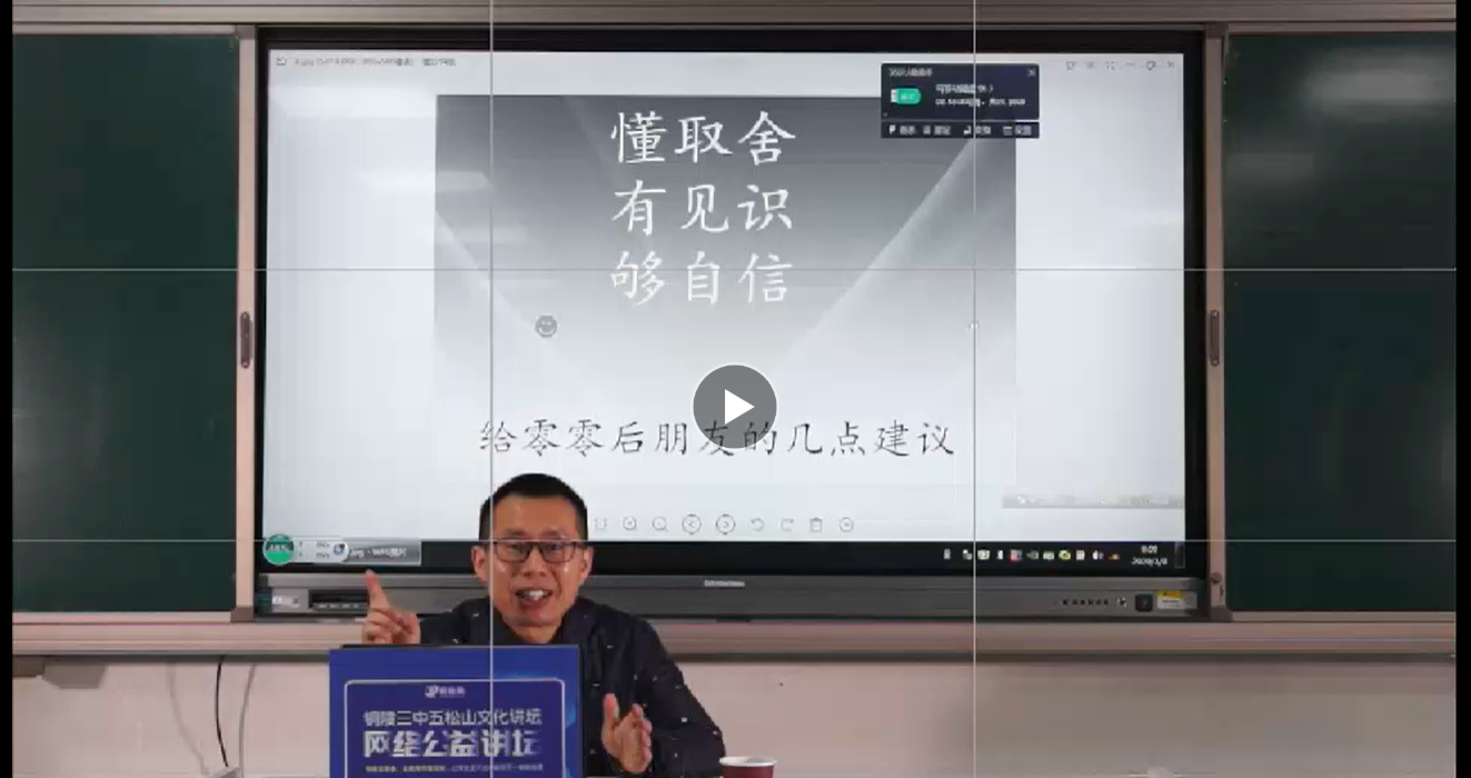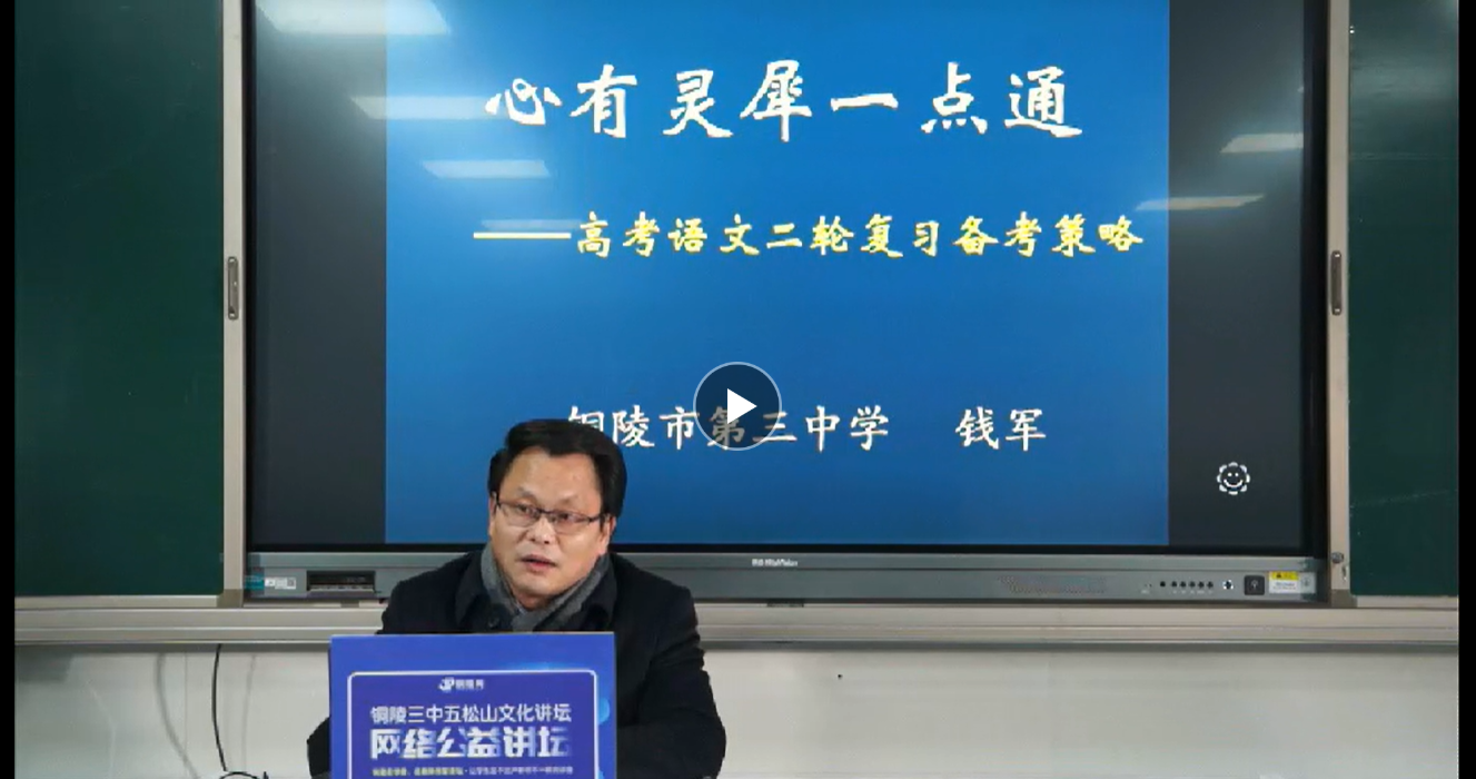 本校讯 特殊时期,特别奉献。经过半个月筹划的铜陵三中五松山文化讲坛“网络公益讲座”于今日正式开播。