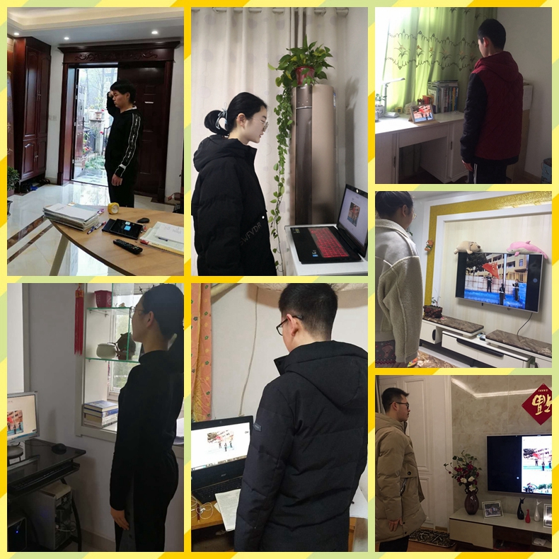 这场特殊的升旗仪式得到了老师们及各个班级的响应。同心相连,“齐声”歌咏。每一个屏幕前,我们都在认真参与;每一颗心脏里,都在奔涌着崇敬。