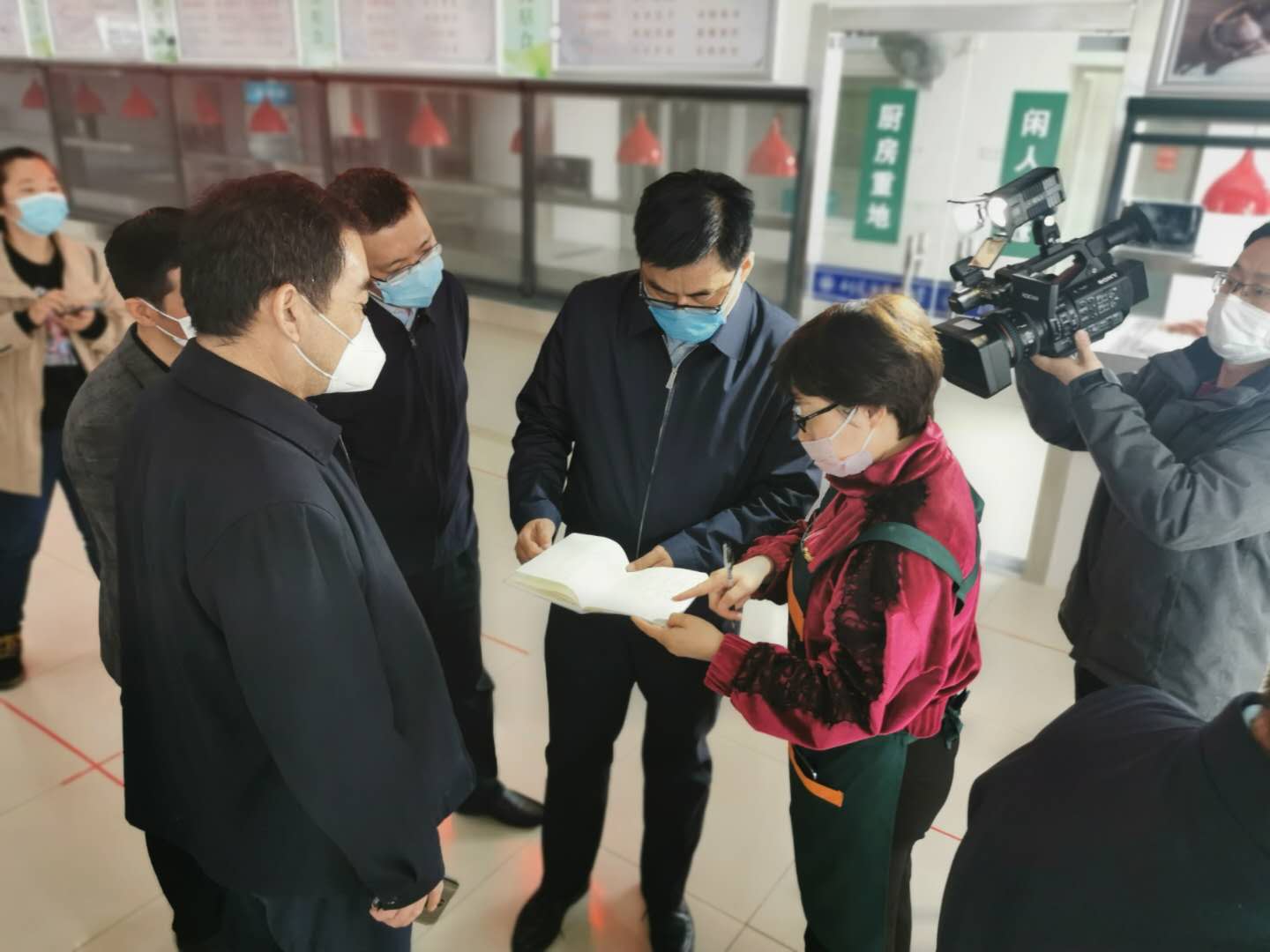 本校讯 4月23日,副市长吴强在教体局相关负责人的陪同下来我校食堂巡视检查,校党委委员、副校长张国荣和总务处负责人骆为、保卫科负责人凌兴民全程陪同检查。