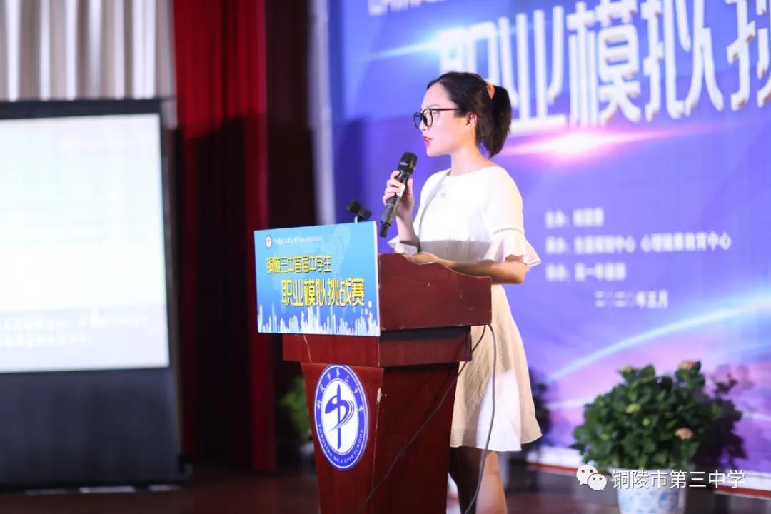 5月15日下午4点20分,我校首届中学生职业模拟挑战赛在多功能厅隆重举行。本次大赛作为我校“阳光照进你心里”心理主题月的重要活动之一,由校团委主办,校学生发展中心承办,高一年级部协办。校党委副书记叶叶、办公室主任梁波、政教处主任章学标、教科室主任钱军、生态科普中心主任樊荣、团委副书记王俊朝、心理健康教育中心叶文婷老师出席大赛并担任评委。