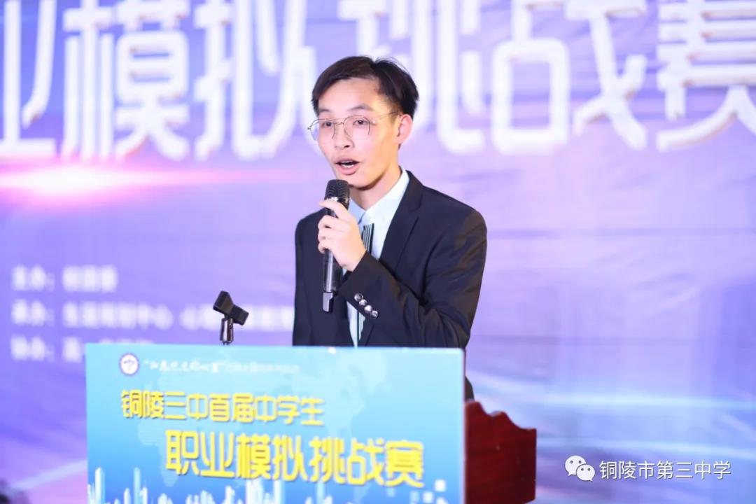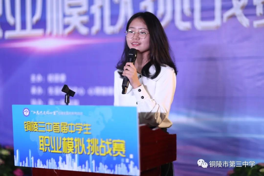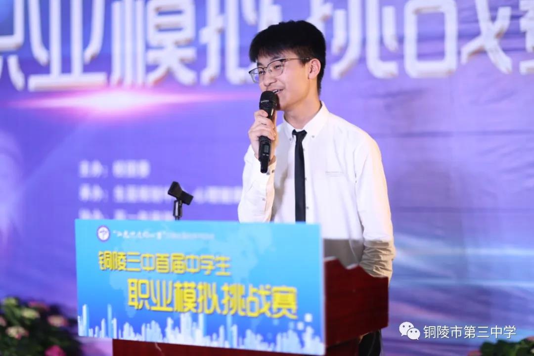 大赛最后,主持人宣读了本次大赛的全部获奖名单,同时为获得特等奖的9名同学及获得集体奖的班级举行了颁奖仪式。现场的同学们用热烈掌声致以祝贺,献给对方,也献给自己。至此,铜陵三中首届中学生职业模拟挑战赛圆满结束。