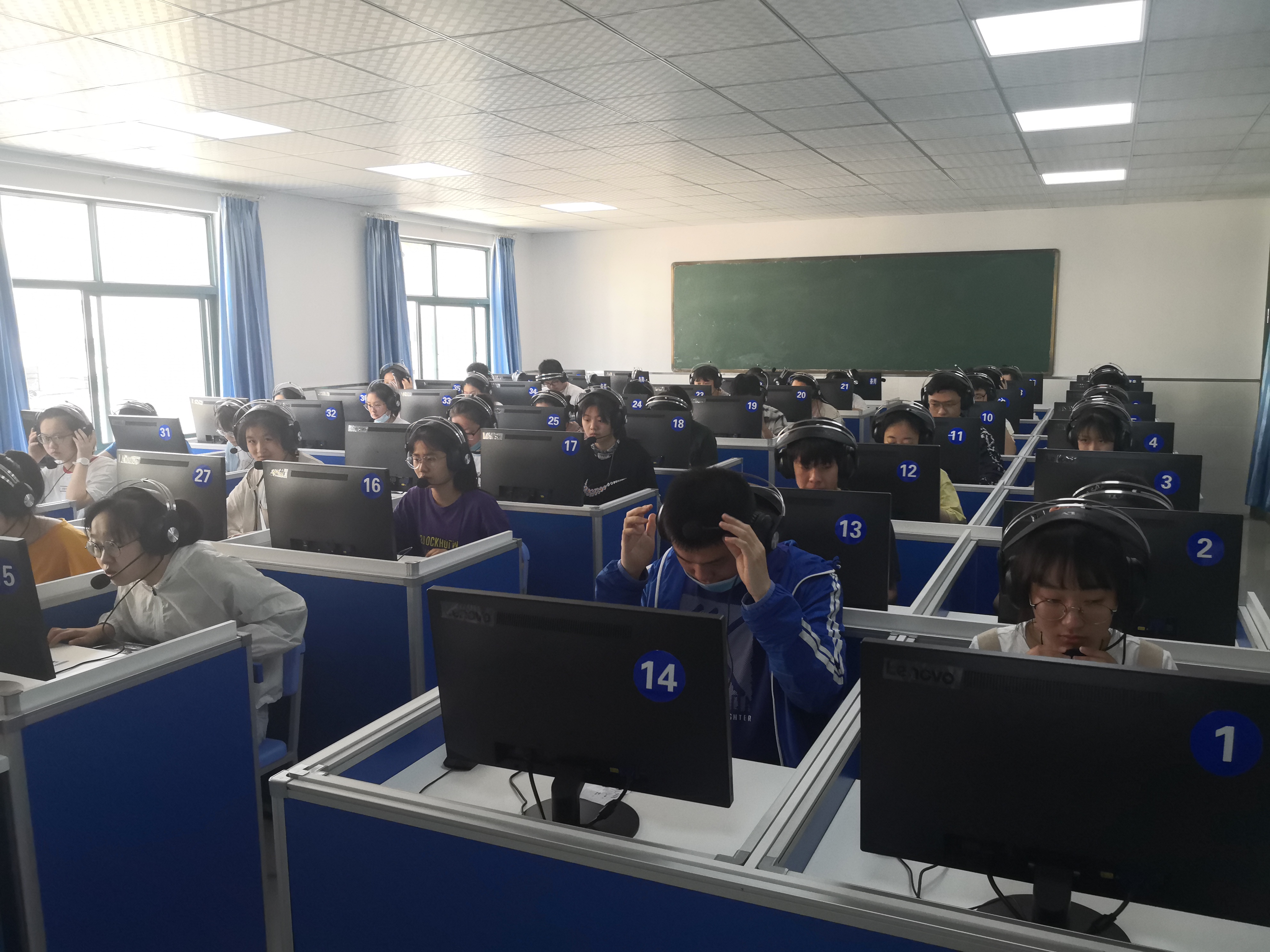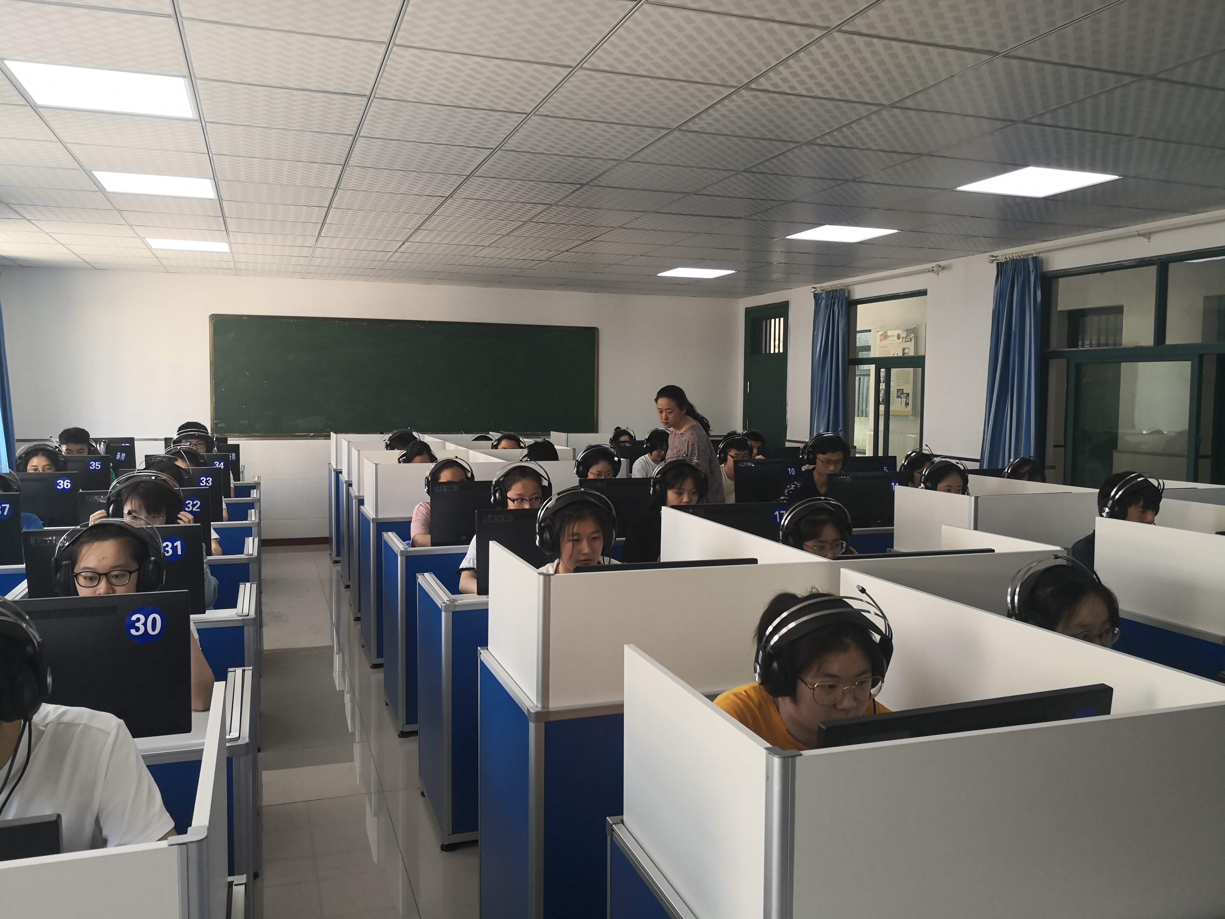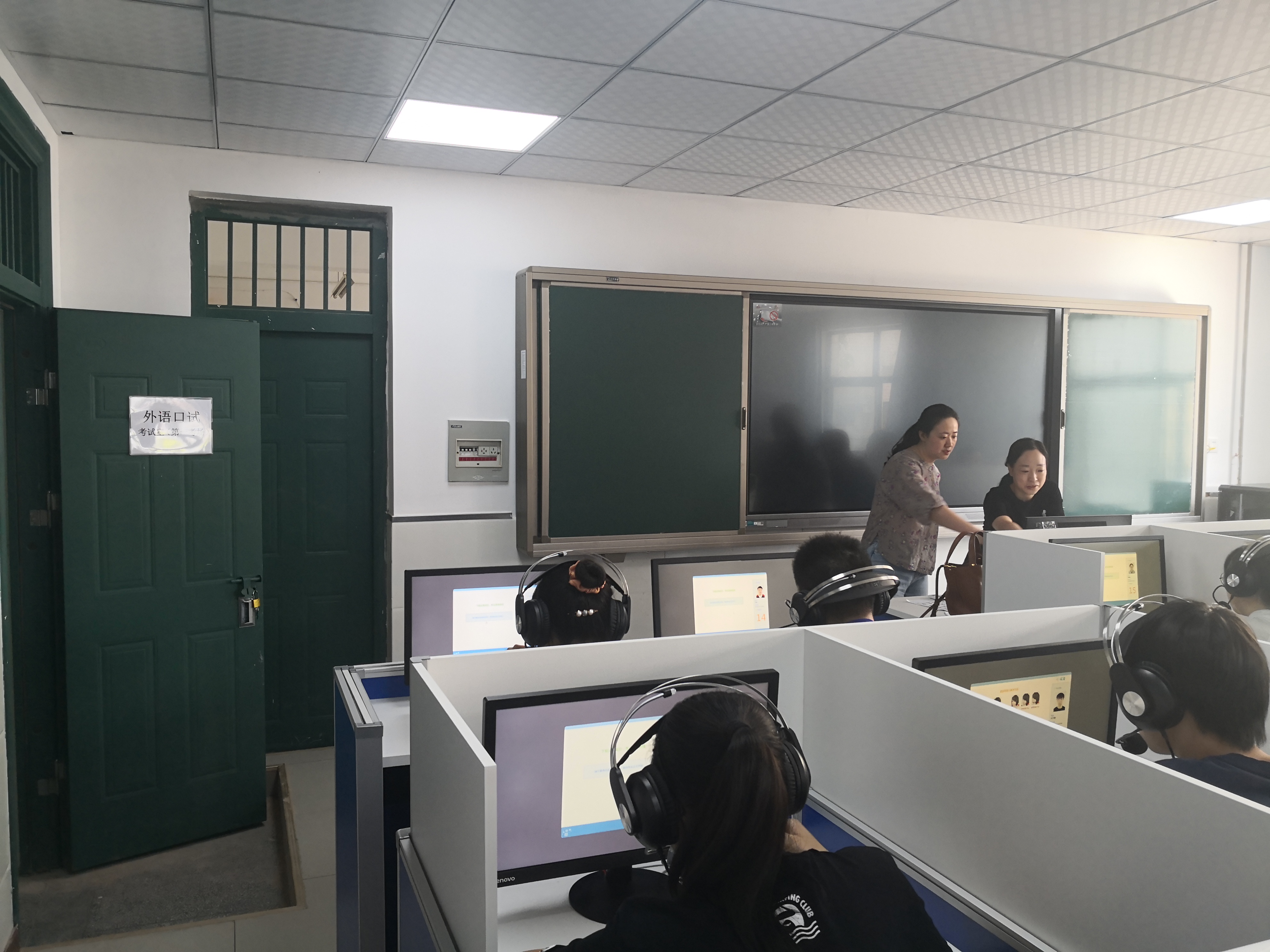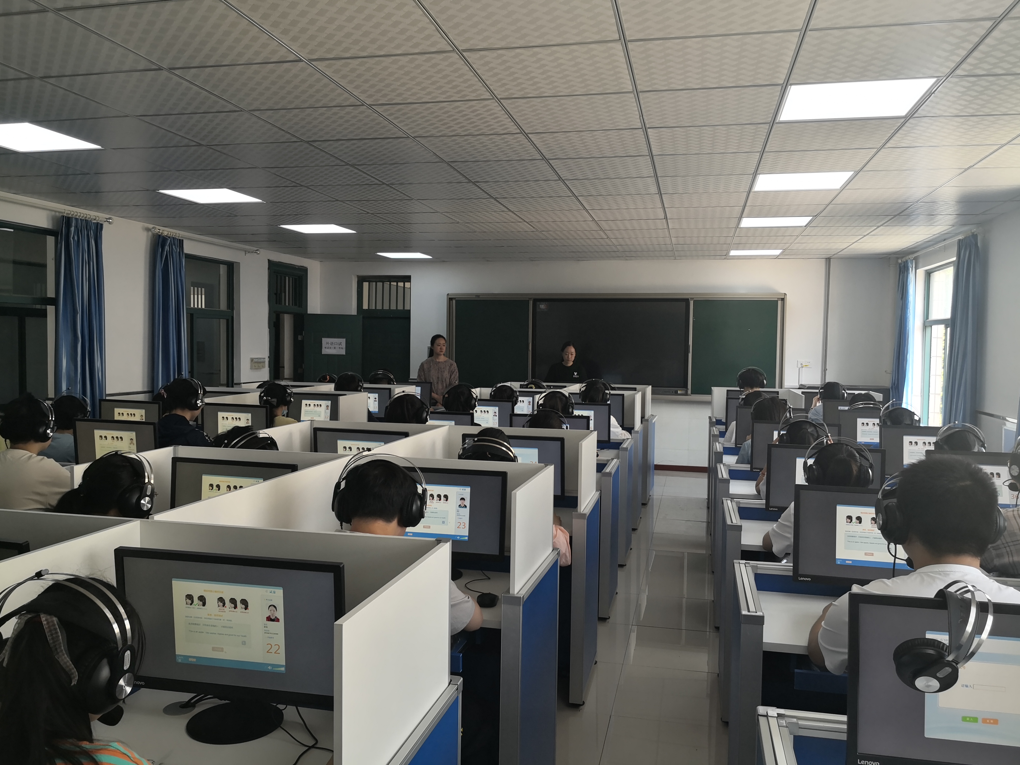 今年的外语口语考试首次采用人机对话形式进行,这种全新的考试组织形式为学校的考试组织带来了挑战。为了确保考试的顺利进行,铜陵三中考点的模拟测试严格按照市教育招生考试院文件安排、按照正式考试操作流程组织的。铜陵三中教务处杨明英、叶文婷相互配合,周密安排,信息技术组在组长陶慧萍老师的带领下提前做好考试设备的维护工作。教务处主任徐盼在模拟测试现场协调安排模拟测试工作人员和考试组织流程优化,发现问题、及时调整,确保5月29、30日的正式考试顺利进行。