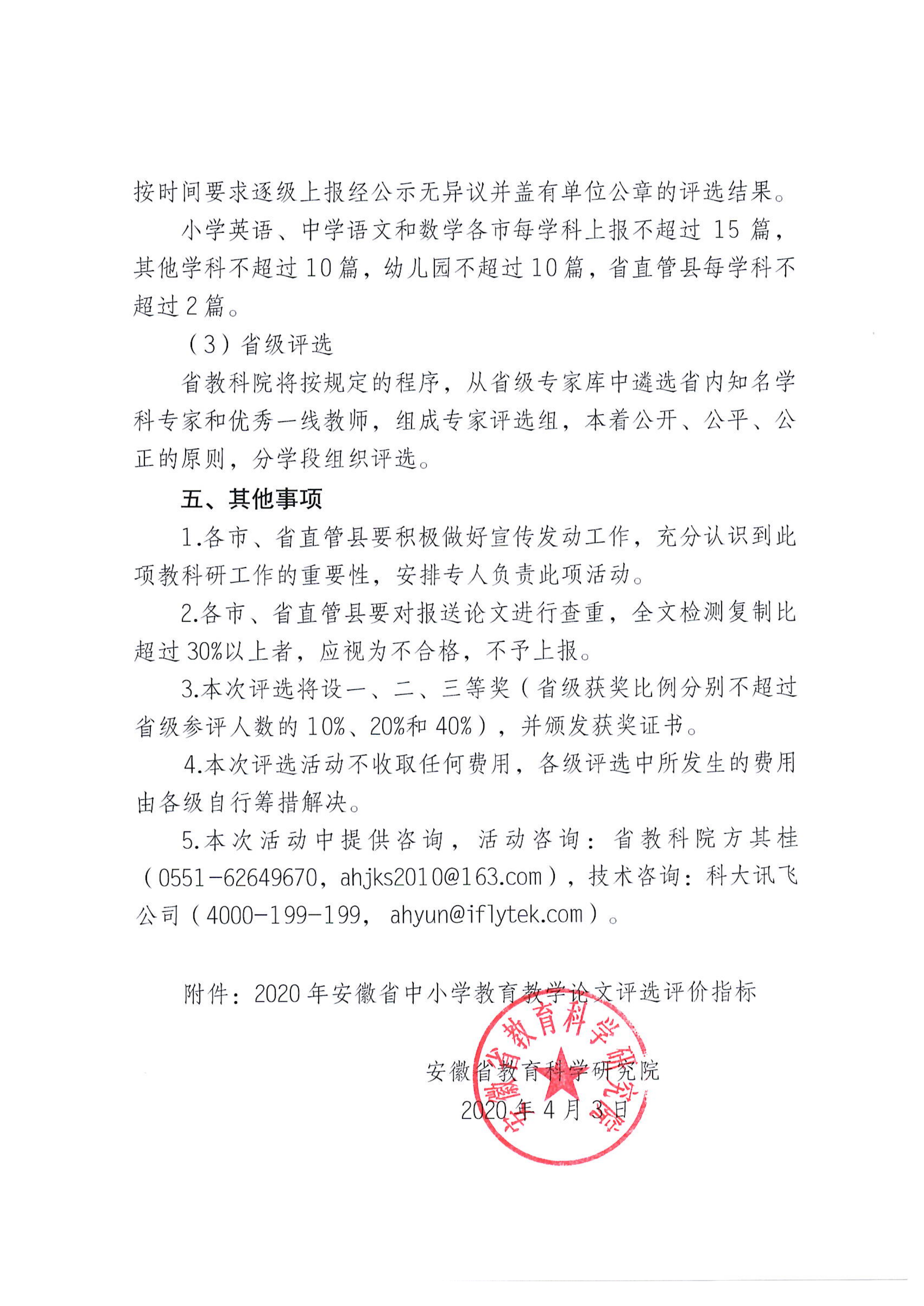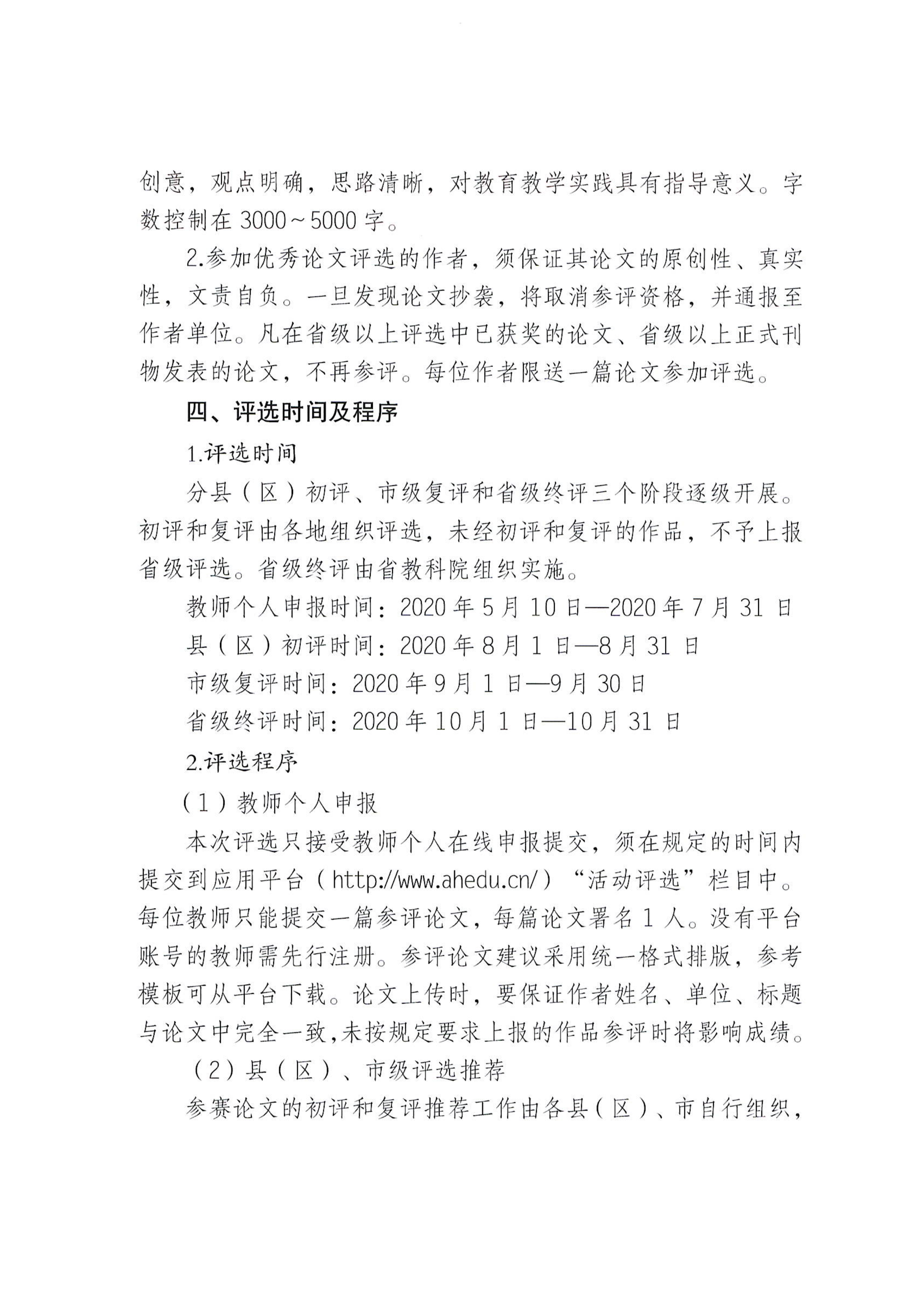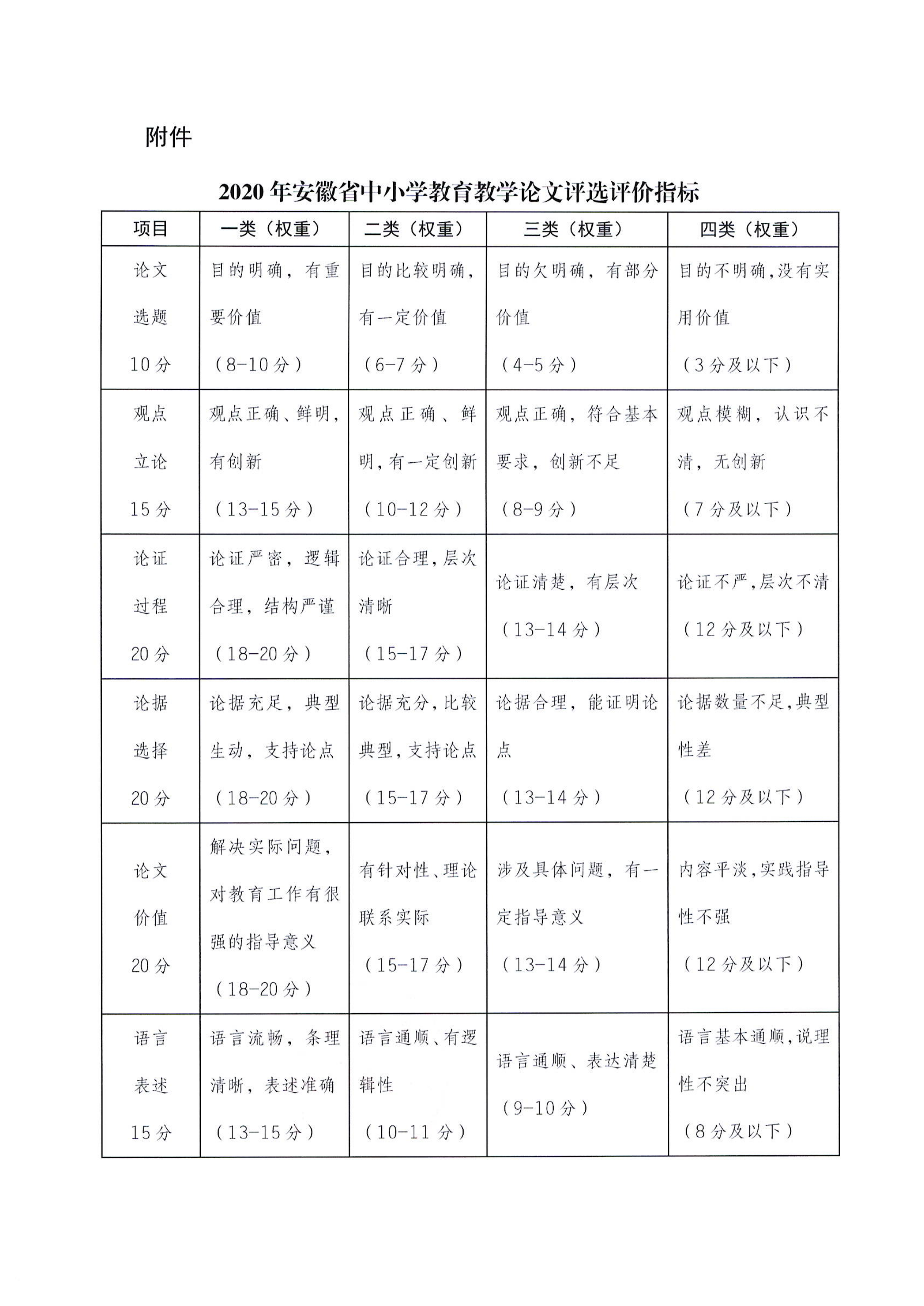 关于开展2020年安徽省中小学教育教学论文评选的通知