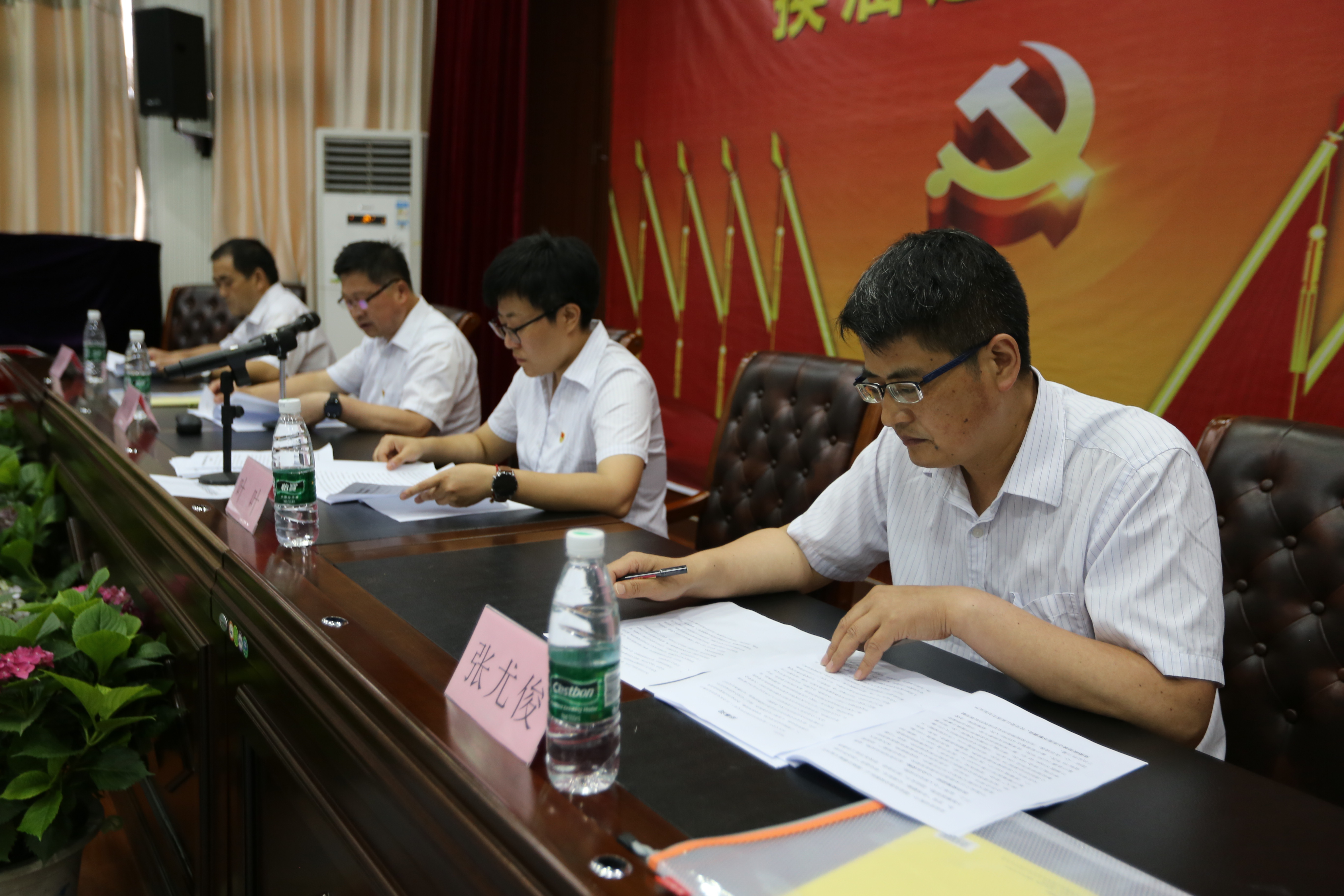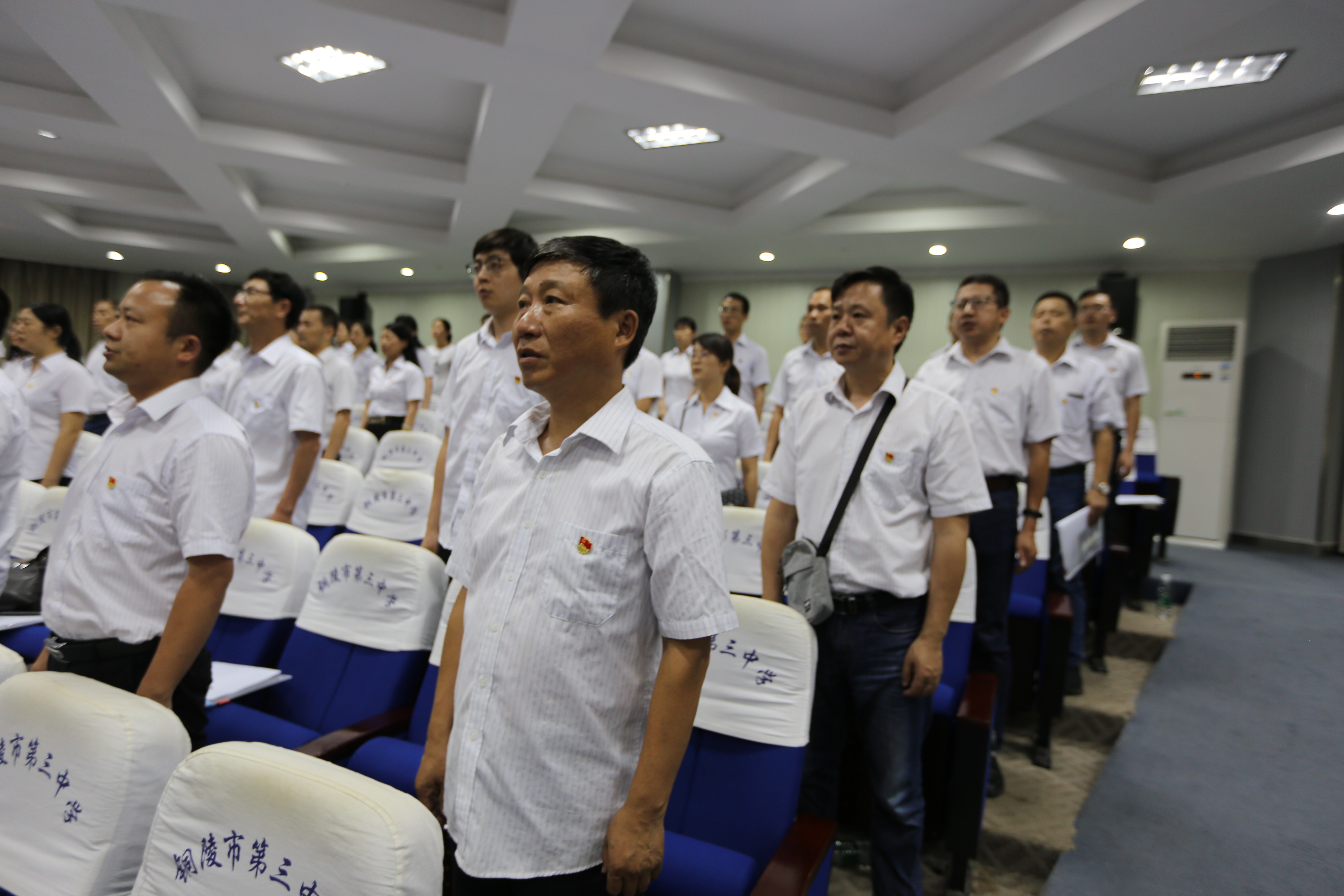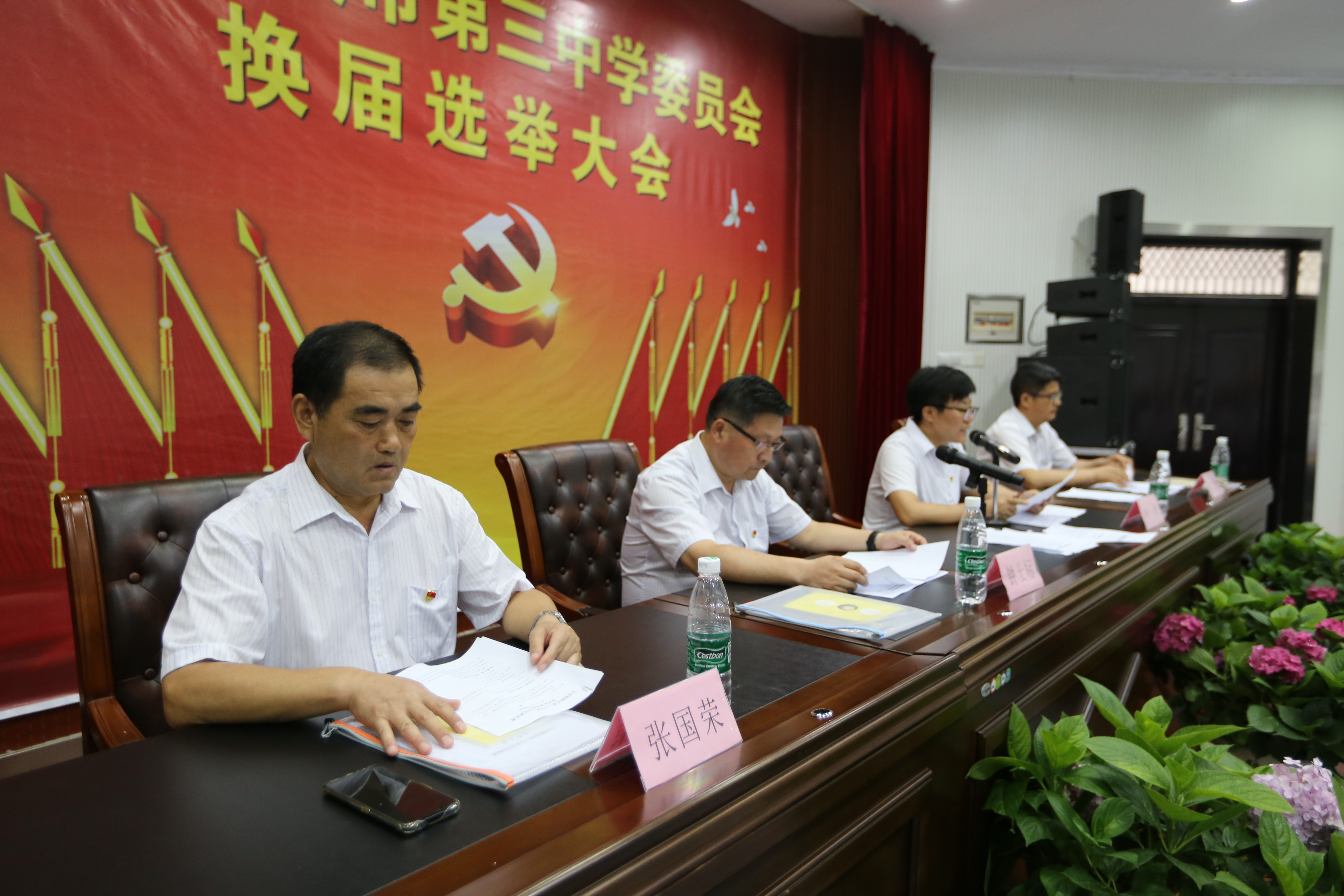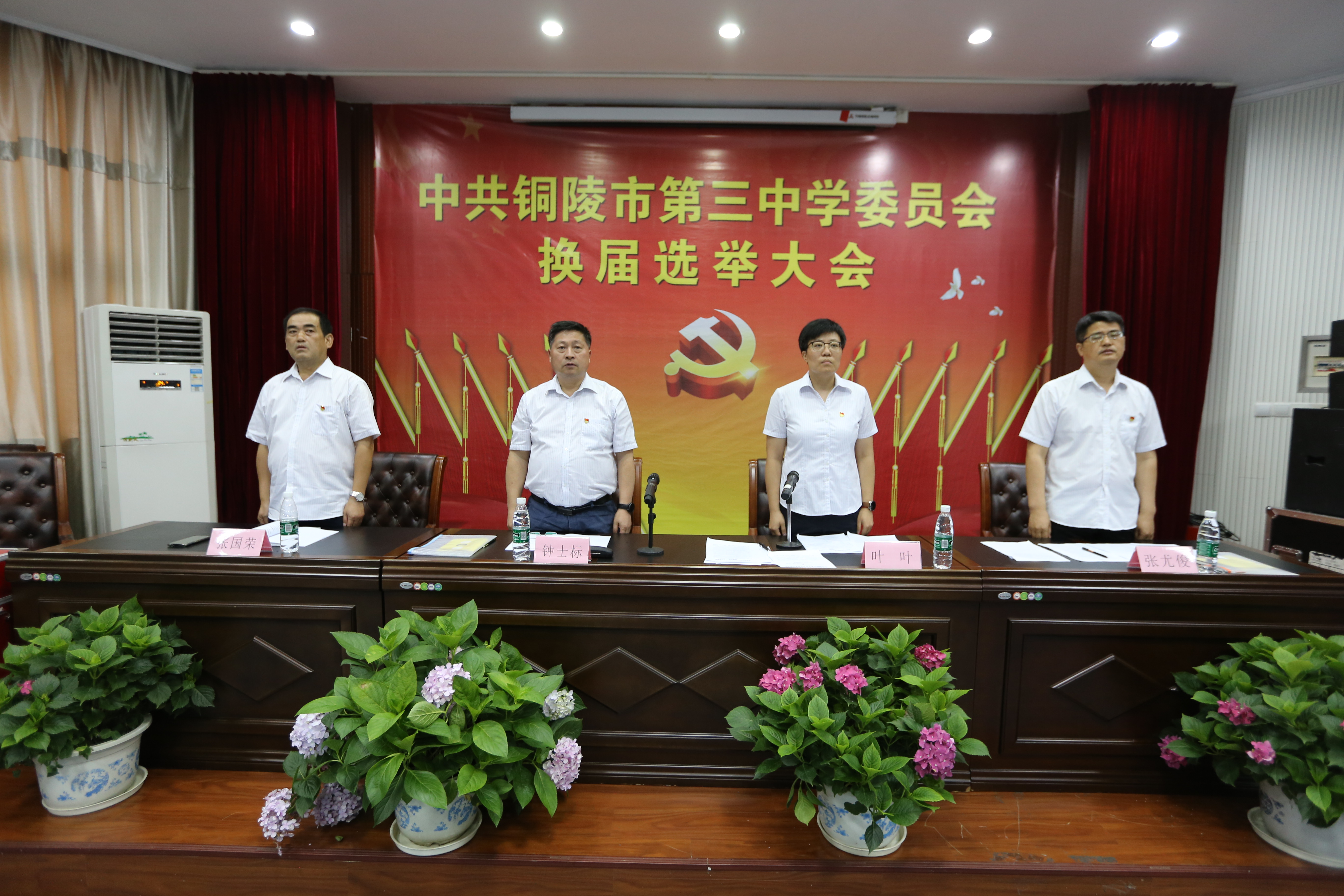 本校讯 6月10日下午,我校隆重举行党委换届选举大会,校党委书记、校长钟士标,副书记叶叶,党委委员、副校长张国荣,党委委员、副校长张尤俊在主席台就坐,全体党员干部参加了大会,副书记叶叶主持了会议。