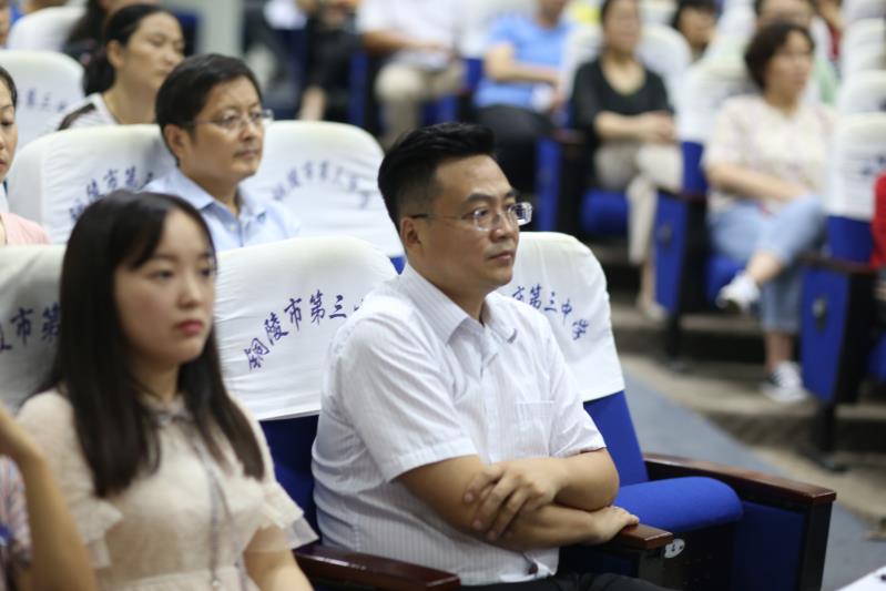 本校讯 17日上午,铜陵三中2019——2020年第二学期结束工作总结大会在多功能厅召开,校党委书记、校长钟士标,校党委副书记叶叶,校党委委员、副校长张国荣,校党委委员、副校长张尤俊和全体教职工参加会议,会议由钟士标同志主持。