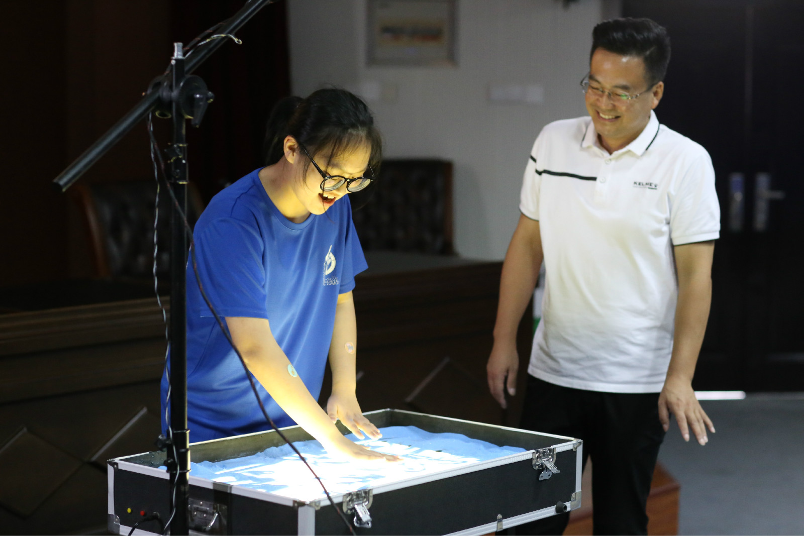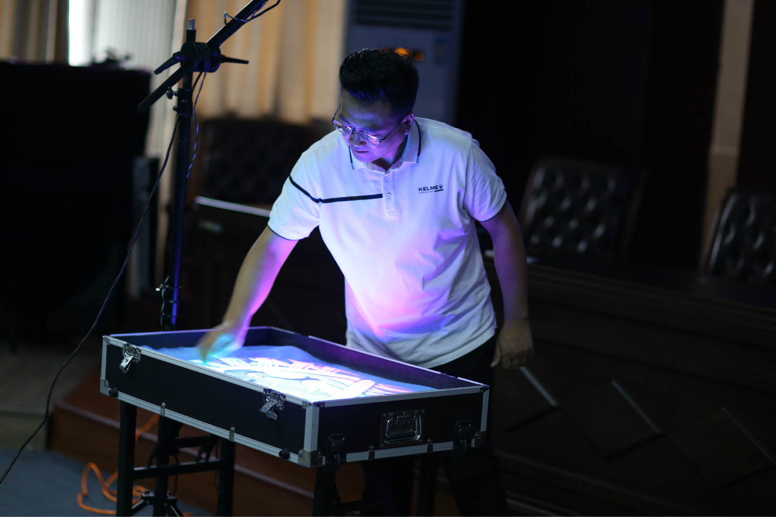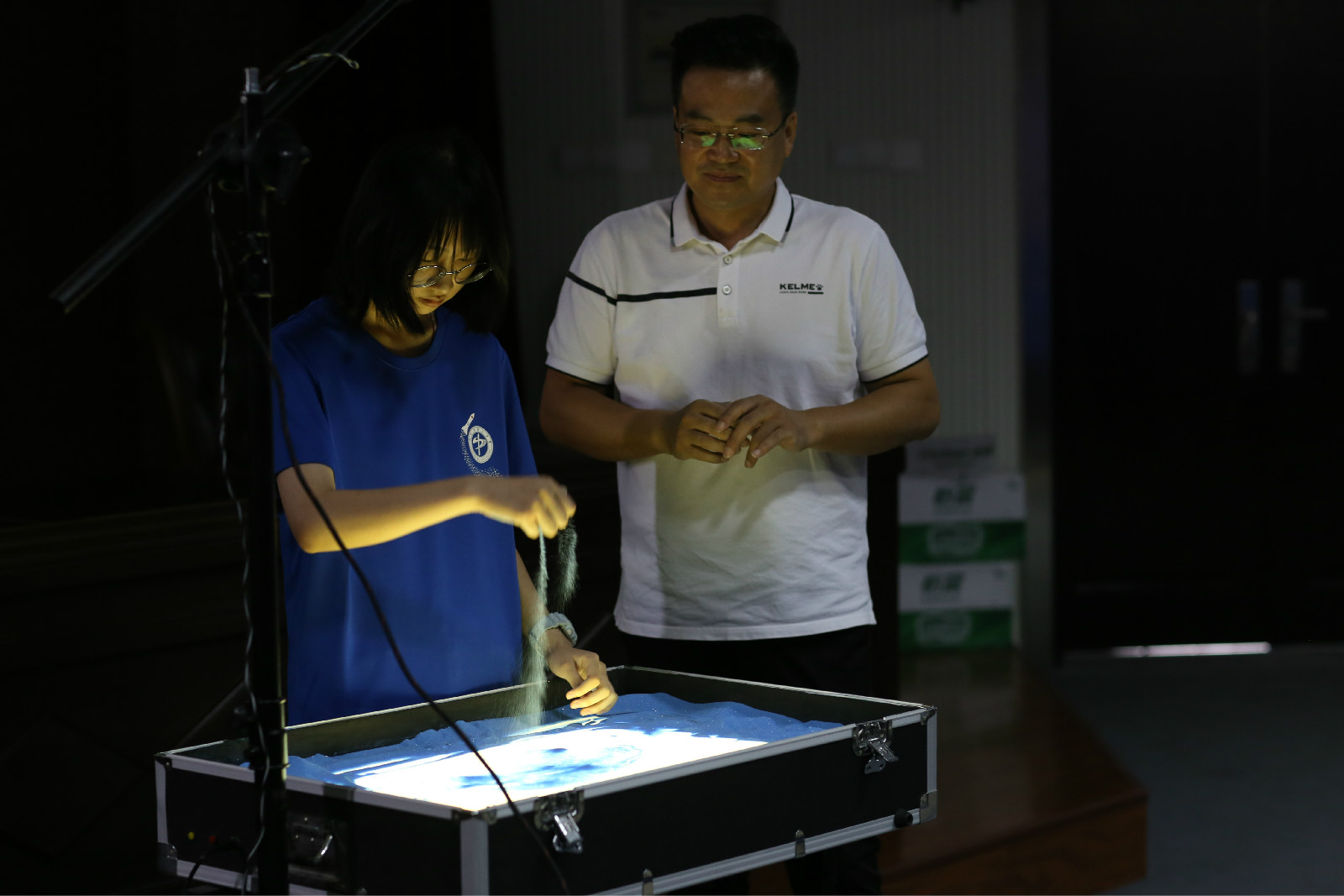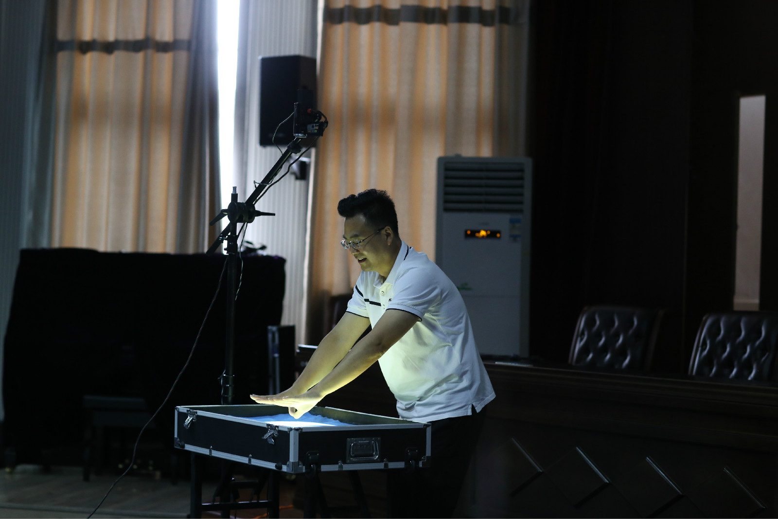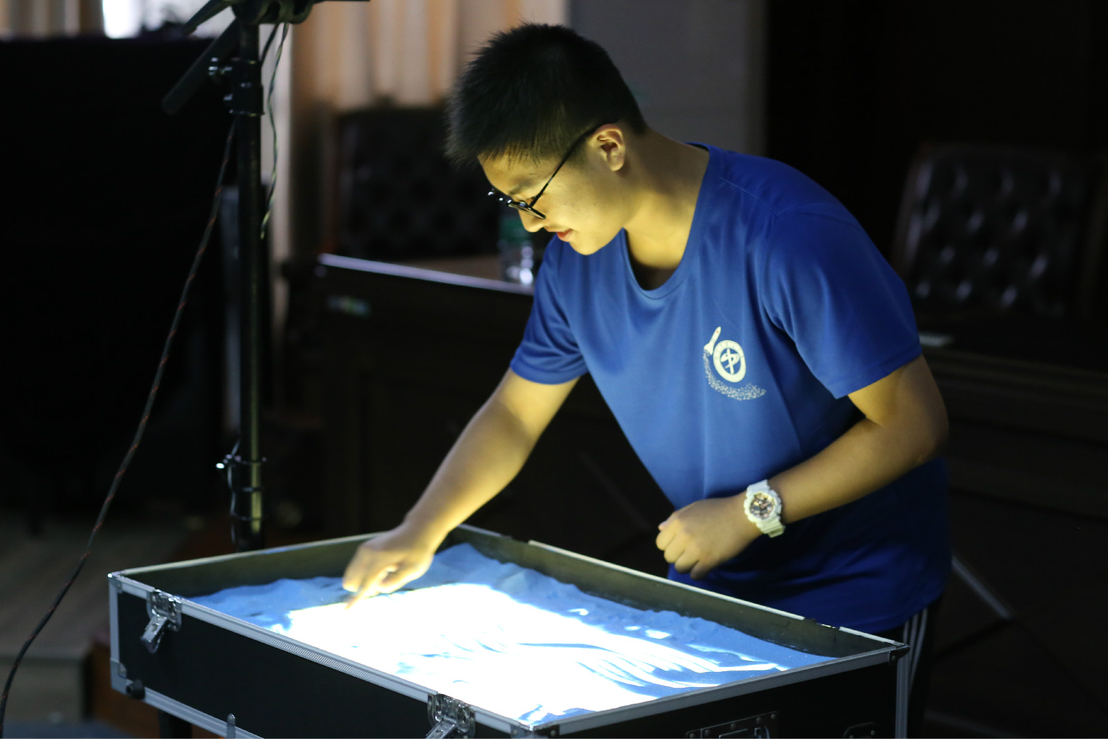 一下子就创作出了令人啧啧称奇的沙画作品。