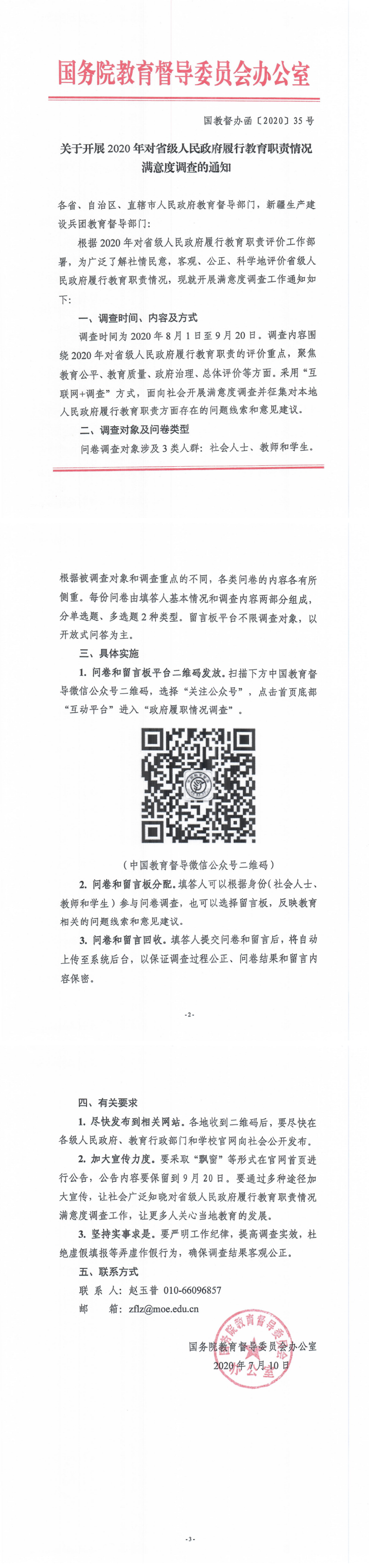 转发《关于开展2020年对省人民政府履行教育职责情况满意度调查的通知》