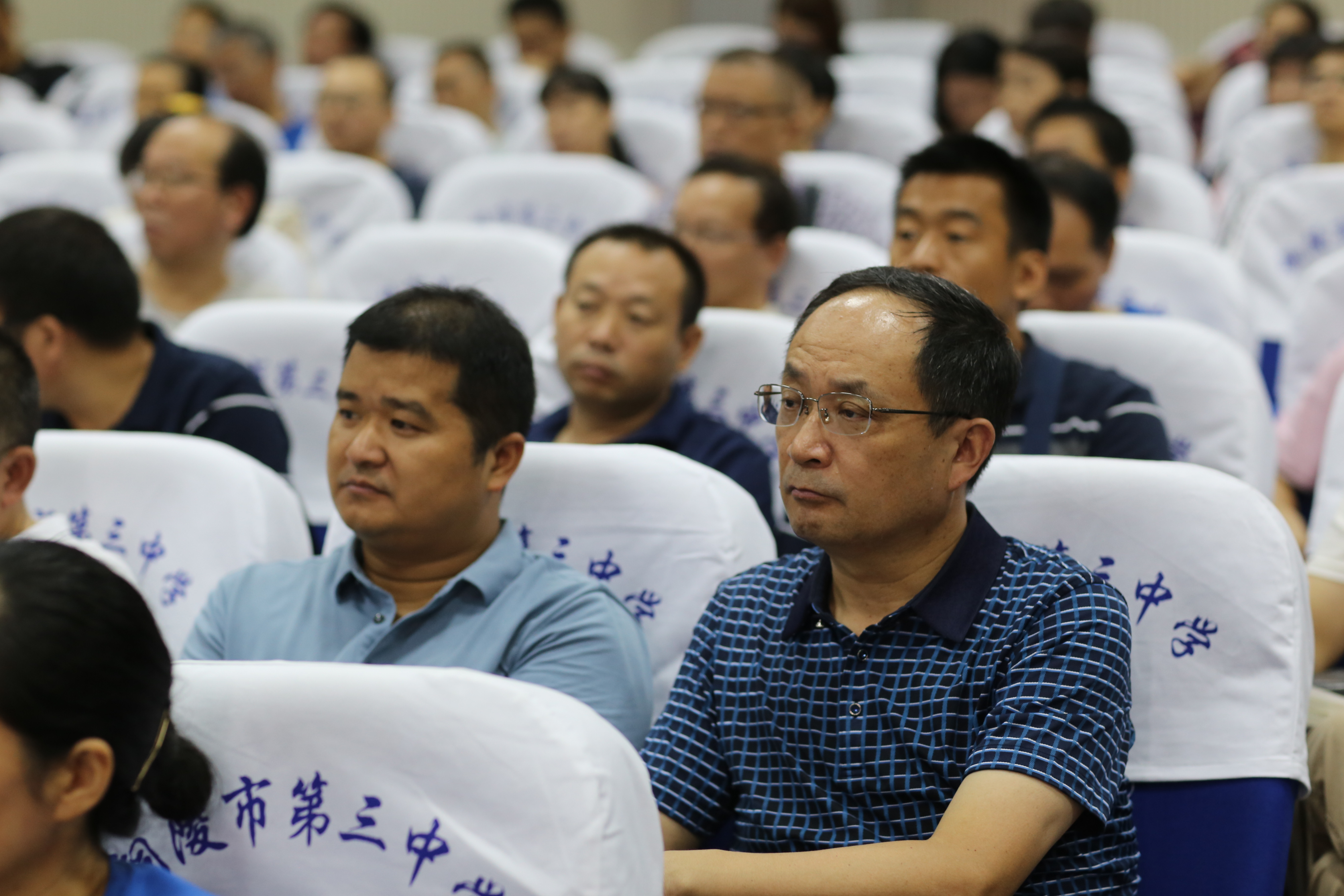 钟校长指出,学校的综合实力,是靠点点滴滴的累积,暑假期间,一些师生还在努力拼搏,三名教师谭荣荣、刘强和赵丽君在安徽省第五届中小学青年教师教学竞赛决赛分获一等奖和三等奖,学生在省职业模拟挑战赛和科技创新大赛中取得优异成绩,钟校长代表学校向所有为宣传三中、扩大三中影响做出了重要贡献的老师们表示诚挚的祝贺。