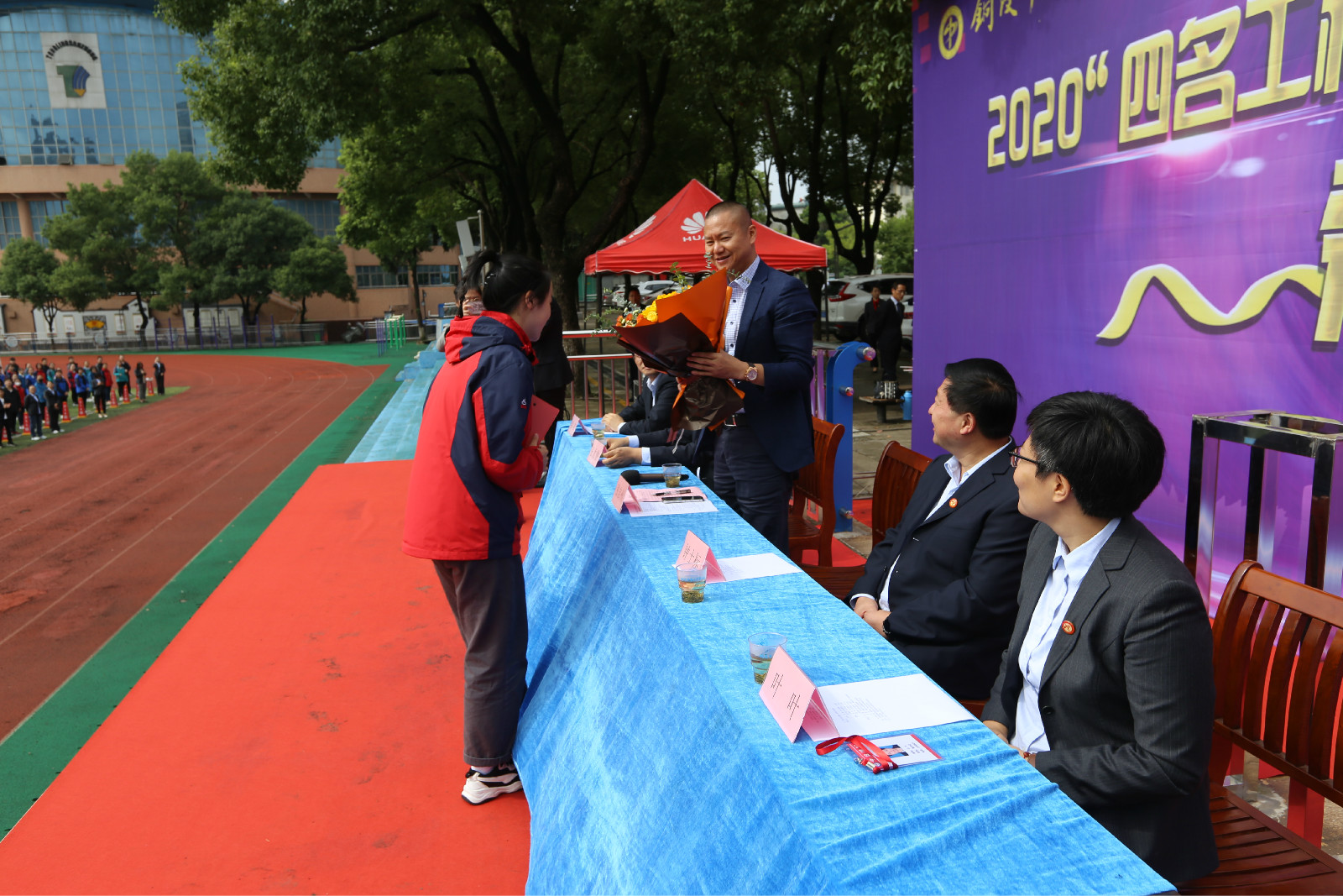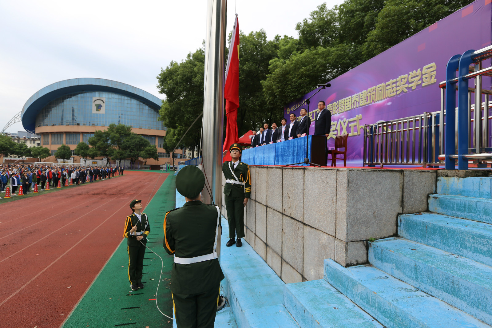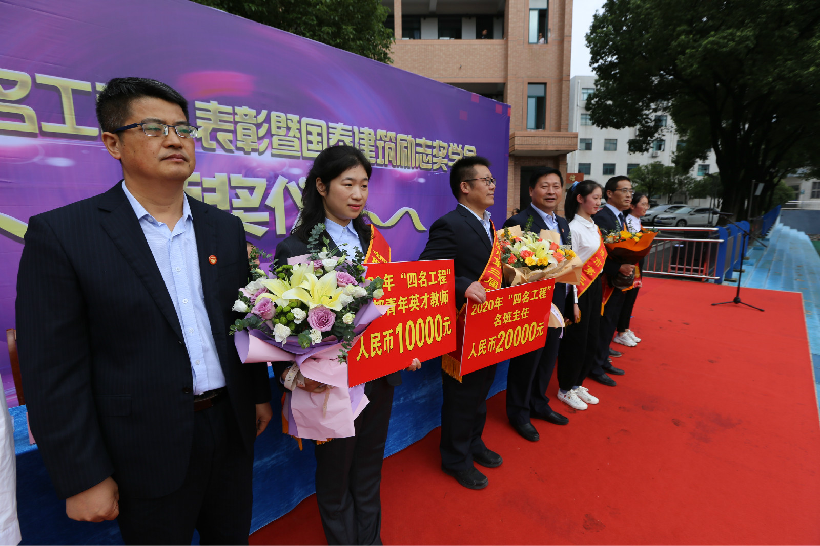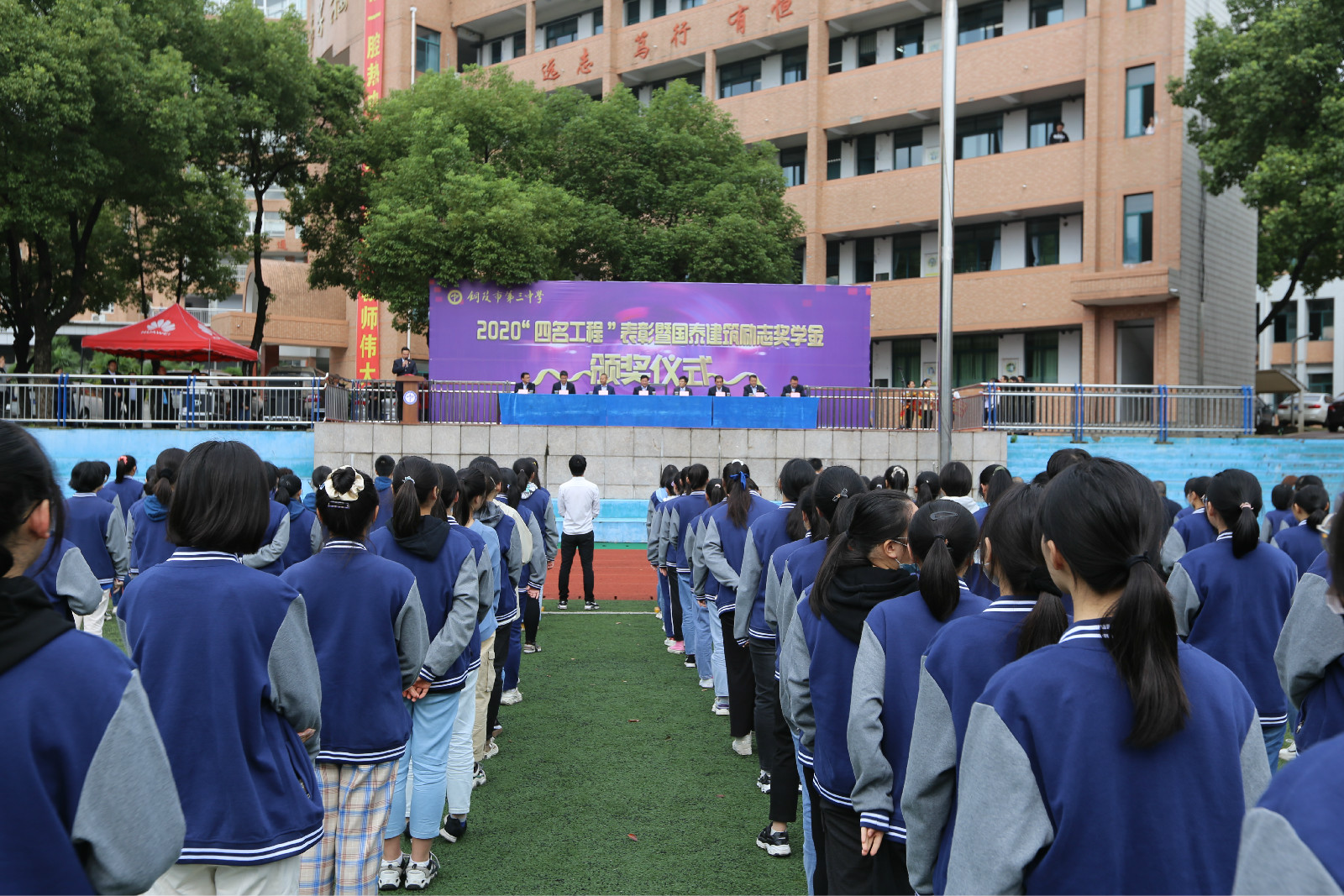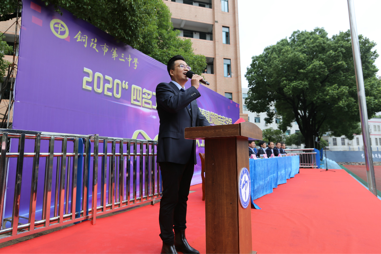 本校讯 9月23日上午,铜陵三中2020年“四名工程”表彰暨国泰建筑集团励志奖学金颁奖仪式在学校操场举行,校党委书记、校长钟士标,安徽国泰建筑集团董事长张自州先生,校党委副书记叶叶,校党委委员、副校长张国荣,校党委委员、副校长张尤俊,校党委委员、政教处主任章学标和全体师生及部分学生家长出席颁奖仪式,活动由梁波主任主持。