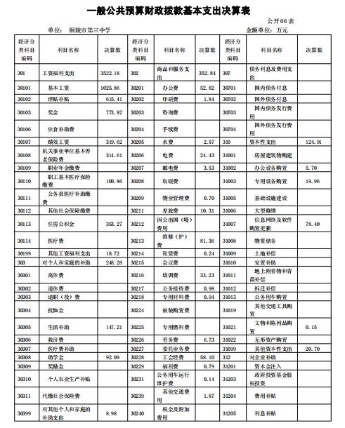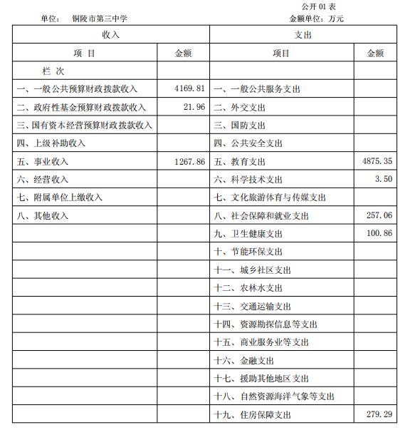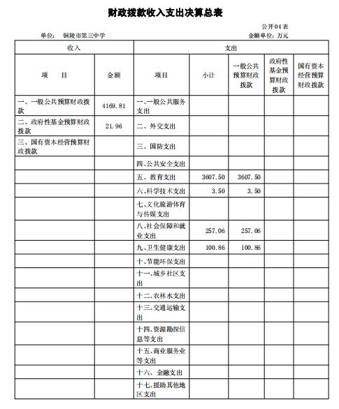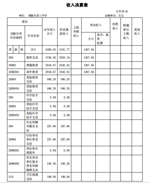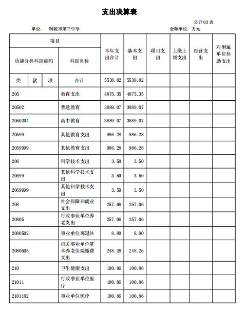 第二部分铜陵市第三中学 2020 年度单位决算表收入支出决算总表