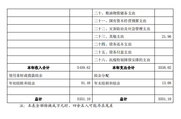 2020 年度收入总计 5551.1 万元(含使用非财政拨款结转结余和年初结转结余)、支出总计 5551.1 万元(含结余分配和年末结转结余)。与 2019 年相比,收、支总计各减少 117.84 万元,下降 2.1%,主要原因:一是进一步压缩经费开支;二是结转结余指标减少导致总收支减少。