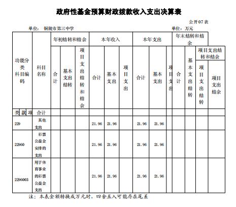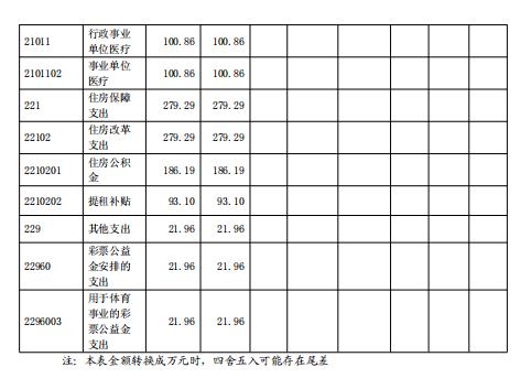 1.其他支出(类)彩票公益金安排的支出(款)用于体育事业的彩票公益金支出(项)。年初预算为 0 万元,支出决算为 21.96 万元,决算数大于预算数的主要原因是此款项为年中追加单位预算指标。