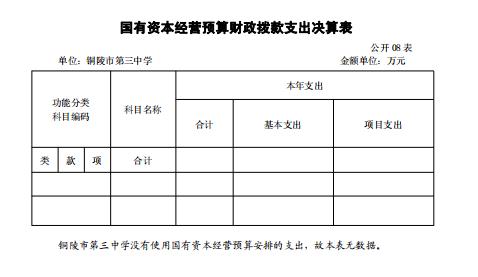 铜陵市第三中学没有使用国有资本经营预算财政拨款安排的支出。