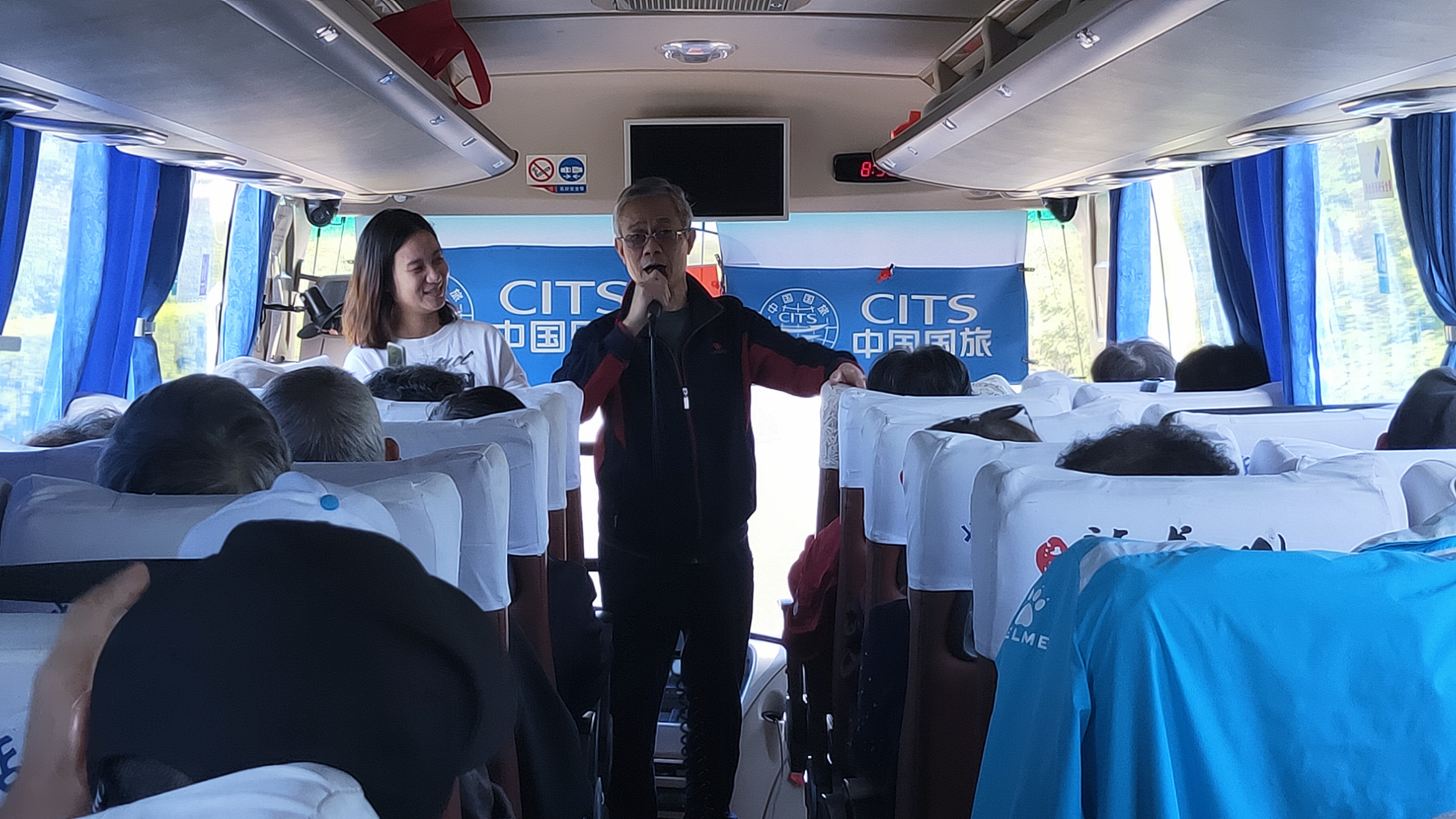 天公作美,告别了连日的阴雨,迎来灿烂的阳光。碧空如洗,老教师的心也活跃起来,一路上纷纷展示歌喉,车内欢声笑语,气氛热烈。