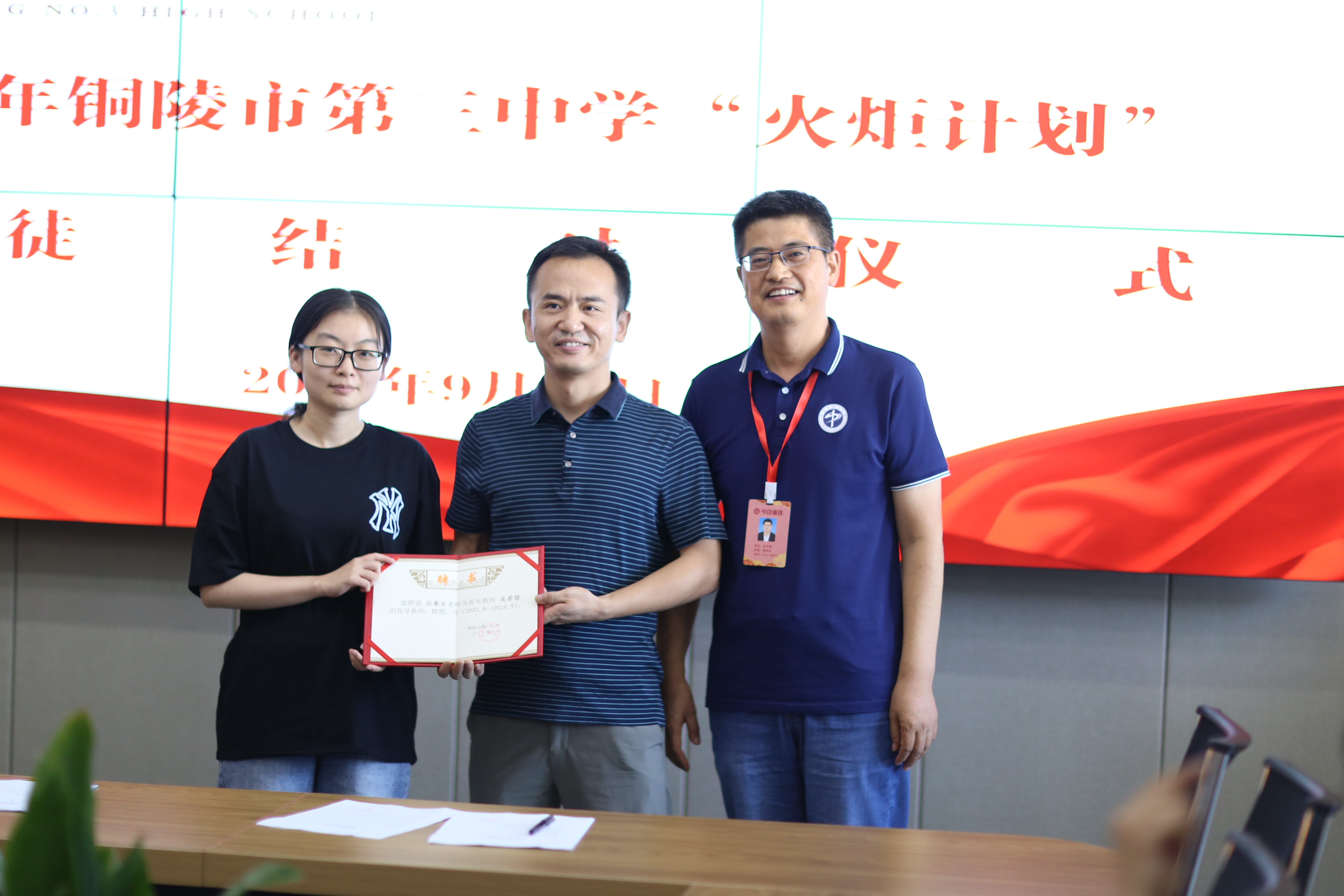 多年以来,铜陵三中积极开展师徒结对活动,青年教师迅速成长,无论是名师、学科带头人,还是骨干教师,都经历了从摸索教学到成为教学骨干的过程。 一个优秀教师的成长离不开自身不懈的努力,而师父的指导、前辈的传、帮、带同样起着至关重要的作用。相信每位青年教师都能在师父的帮助下,走得更稳,走得更快。