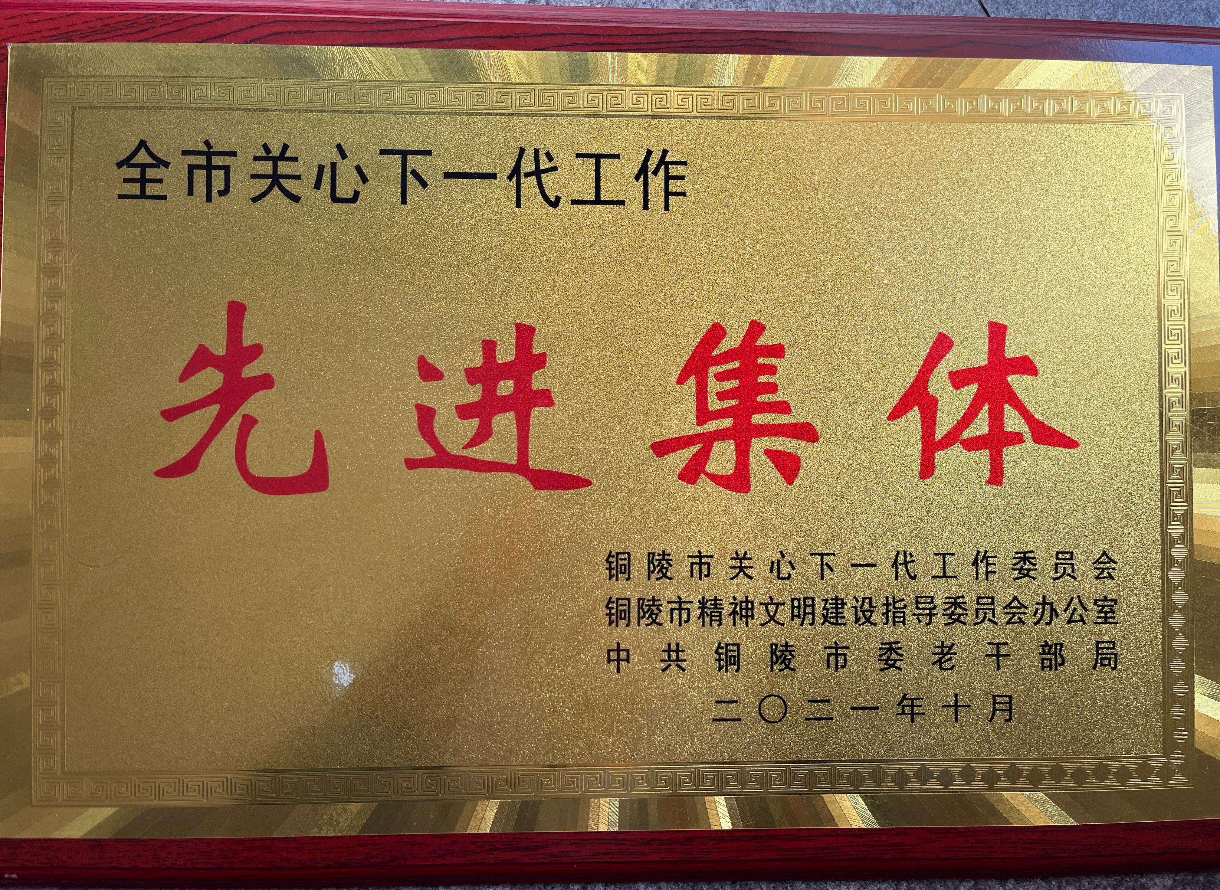10月21日上午,纪念铜陵市关工委成立35周年暨双先表彰大会在市行政会议中心召开,我校关工委获得“先进集体”荣誉称号。