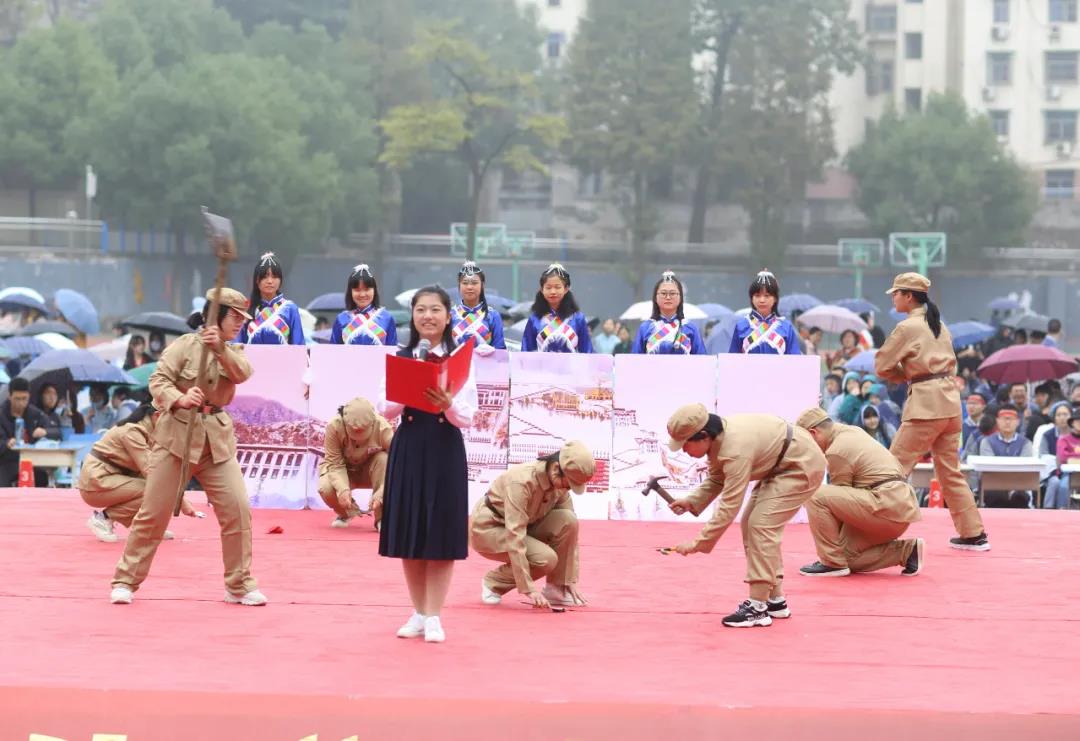 58个方阵,58种记忆,58次展示,各班级才华尽显,舞蹈、音乐、情景剧、标识物等多种形式融入展演中。各班队伍精神抖擞,神采风扬,充满创意的表演入场方式充分展示出三中学子的朝气与活力和团结拼搏、勇于争先的精神状态。
