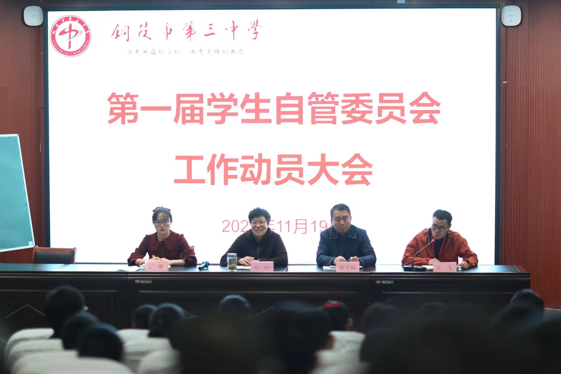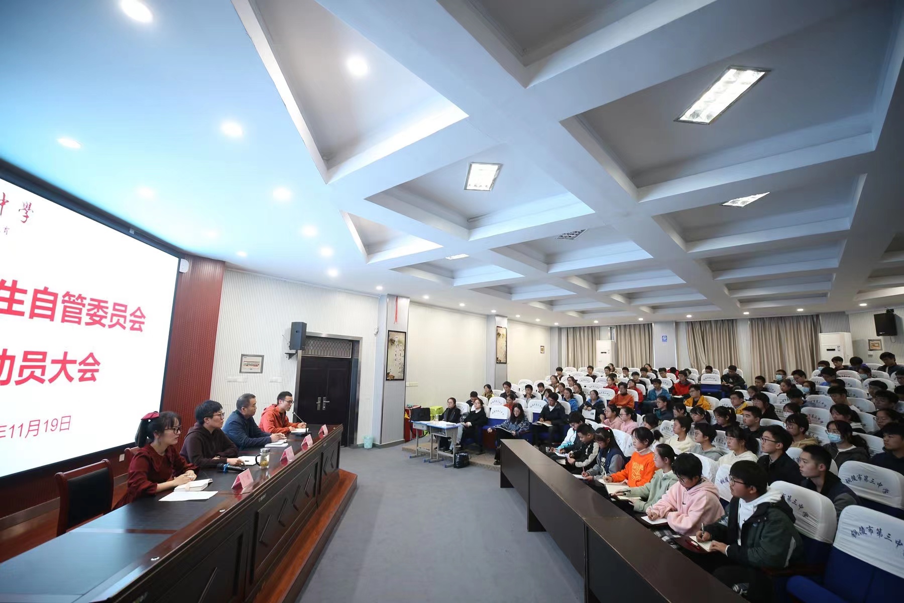 11月19日下午,我校第一届学生自管委员会工作动员大会在校多功能厅召开,校党委书记、校长叶叶、校党委委员、政教处主任章学标等参加。会议由左飞主持。