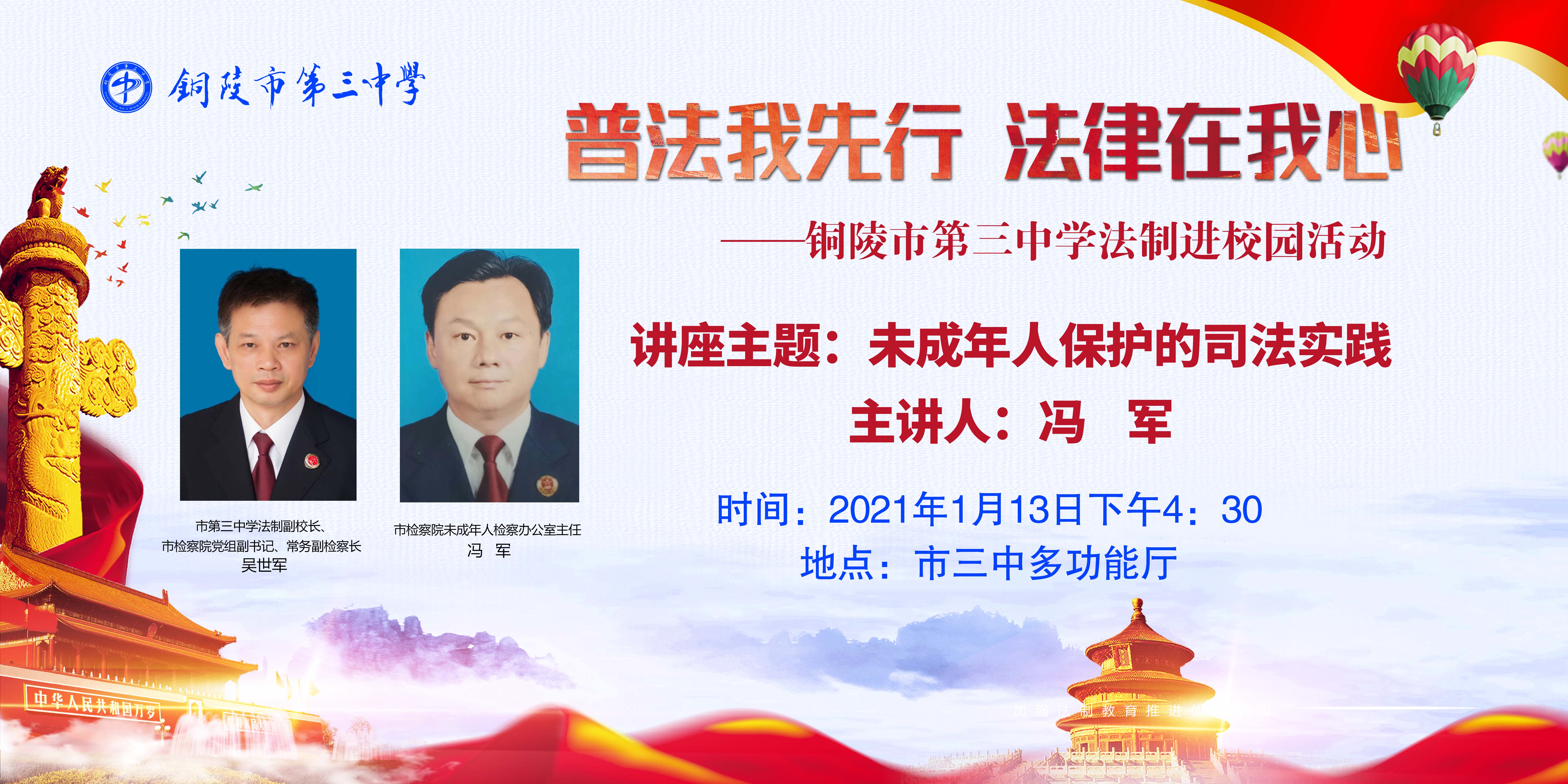 为进一步提升依法治校水平,提高教师法律意识,规范教师从教行为,增强校园法治教育实效,持续构建和谐安全校园,2021年1月13日下午,我校在校多功能厅举行2021年度“法律在心,规范从教”普法讲座活动。