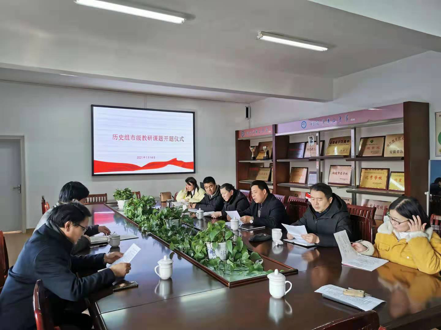 1月14日上午,历史教研组在综合楼五楼会议室举行市级课题《基于历史情景下的家国情怀核心素养的落实》开题仪式。市教科所历史教研员、正高级教师钱要武和校教科室主任钱军莅临指导,课题组成员和历史教研组教师全员参加。