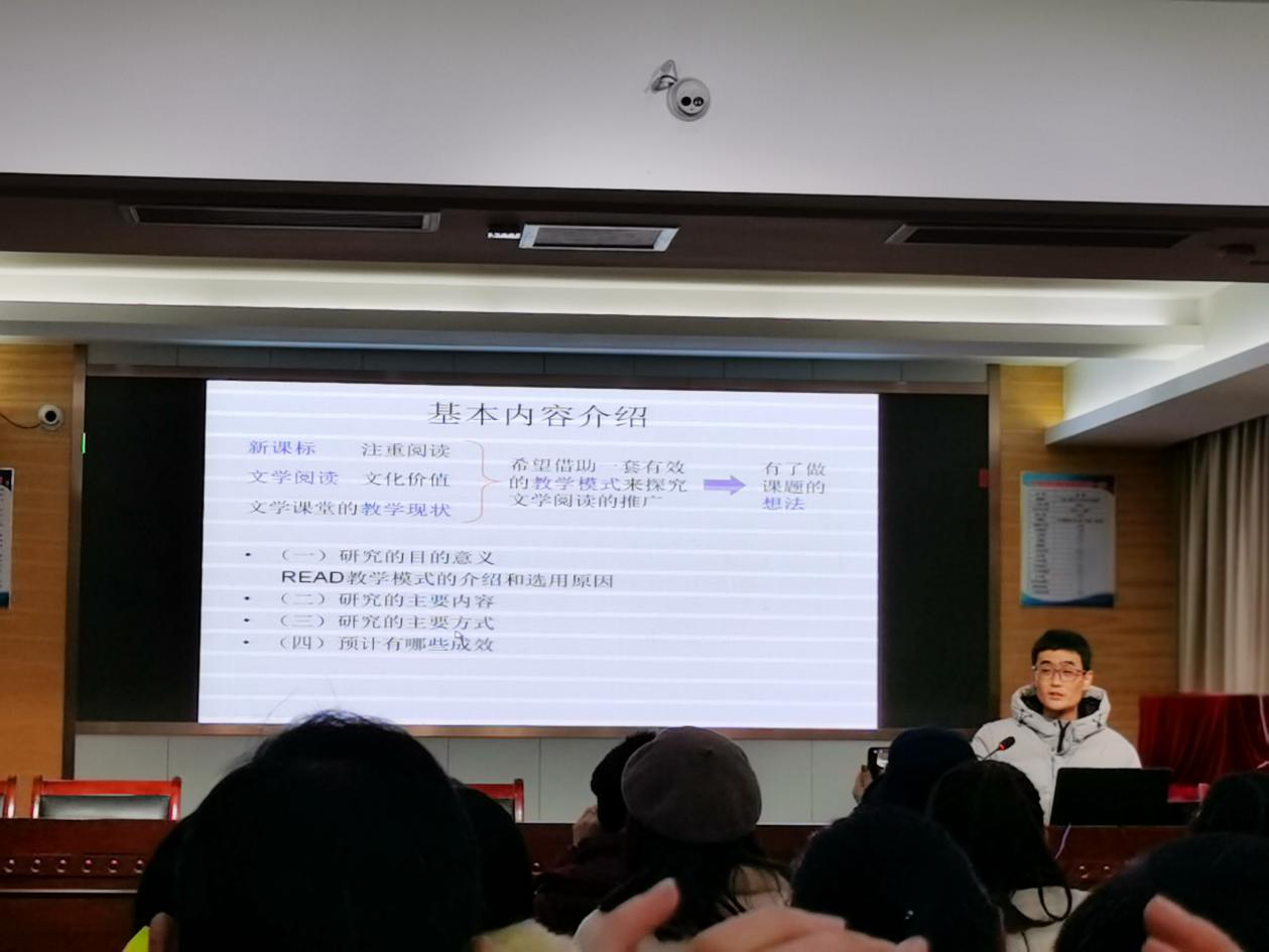 其中我校郭泽恒老师汇报了《READ教学模式在高中英语文学阅读中的实践探索》,阐述了课题的理念:通过一套实用有效的教学模式,来培养学生爱阅读能阅读常阅读,进而比较和探究文化内涵,汲取文化精华,最终目标是要培养出具有良好学科核心素养的学生。